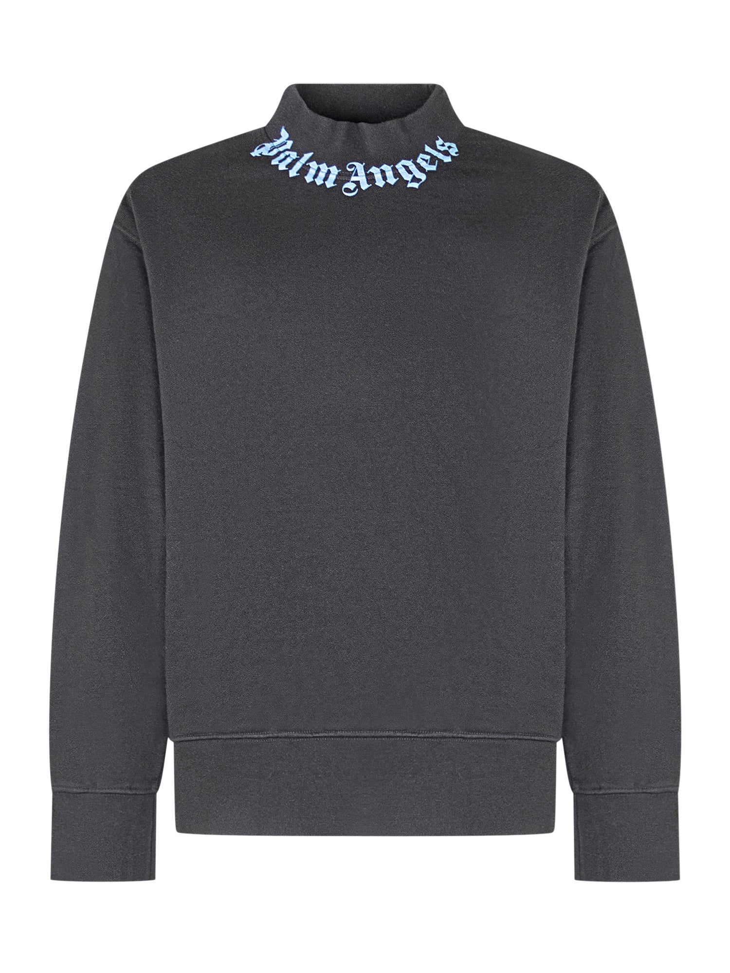 Palm Angels Kids black cotton sweatshirt featuring gothic logo printed on the collar. Relaxed fit and iconic urban style.