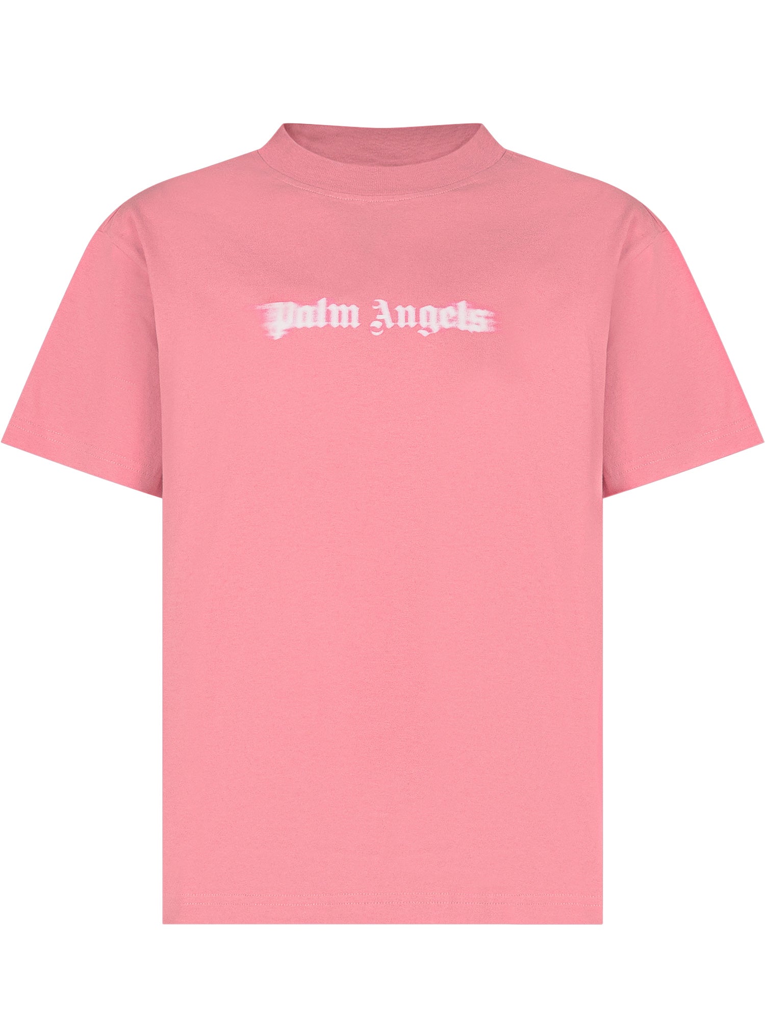 Palm Angels pink cotton T-shirt with front faded logo. Regular fit and minimal design.