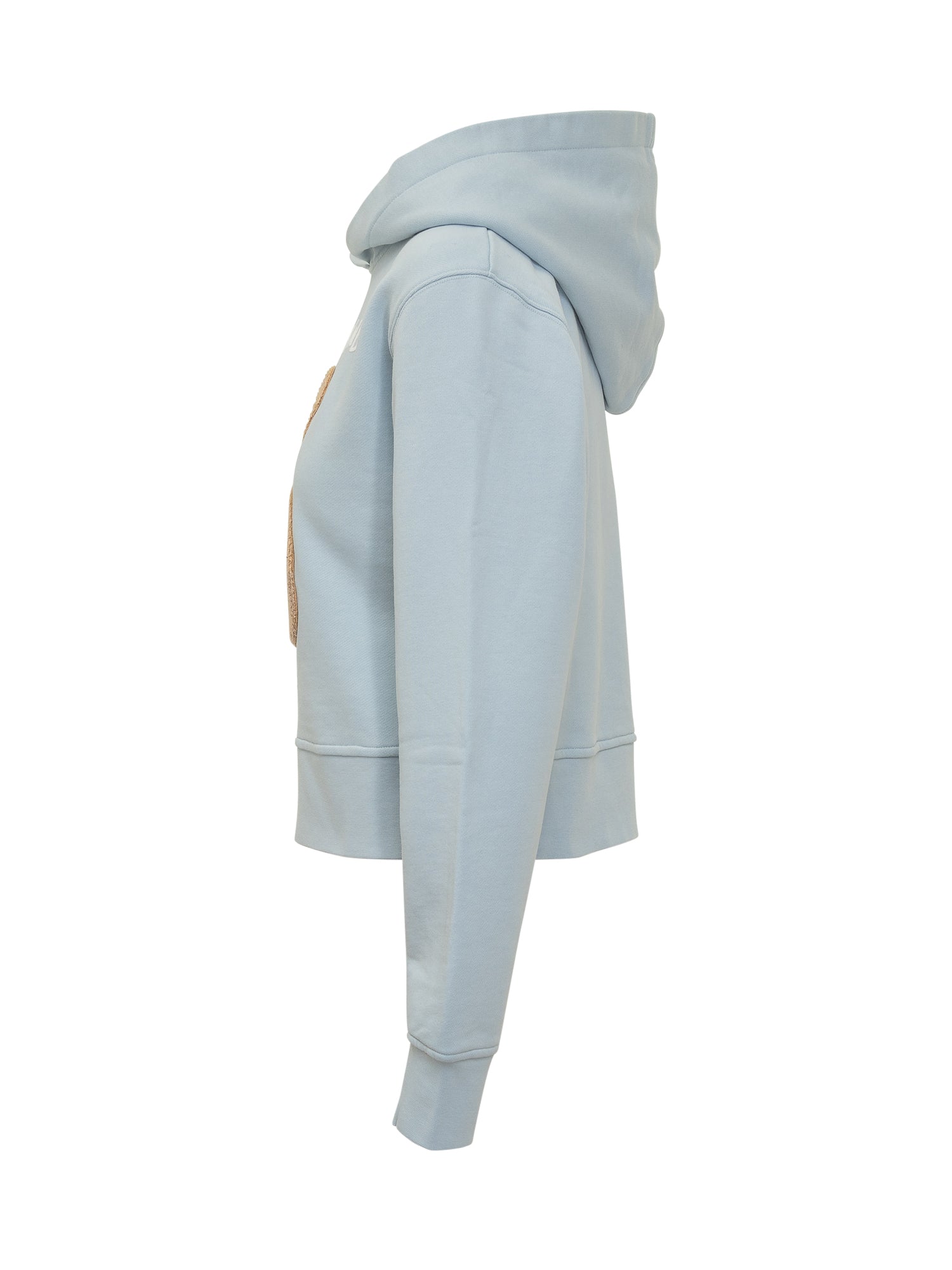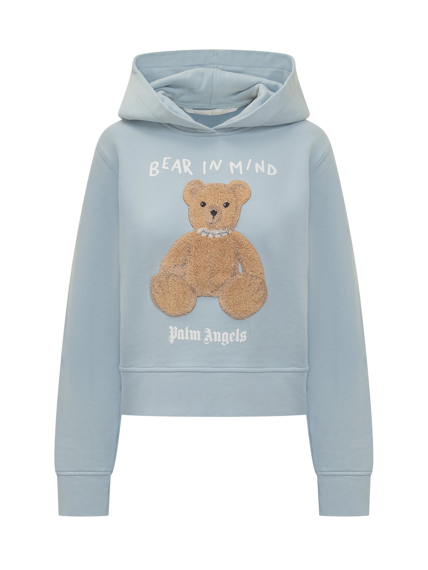 Palm Angels light blue cotton hoodie featuring an embroidered teddy and Bear in Mind print. Designed with a hood and contrast logo.