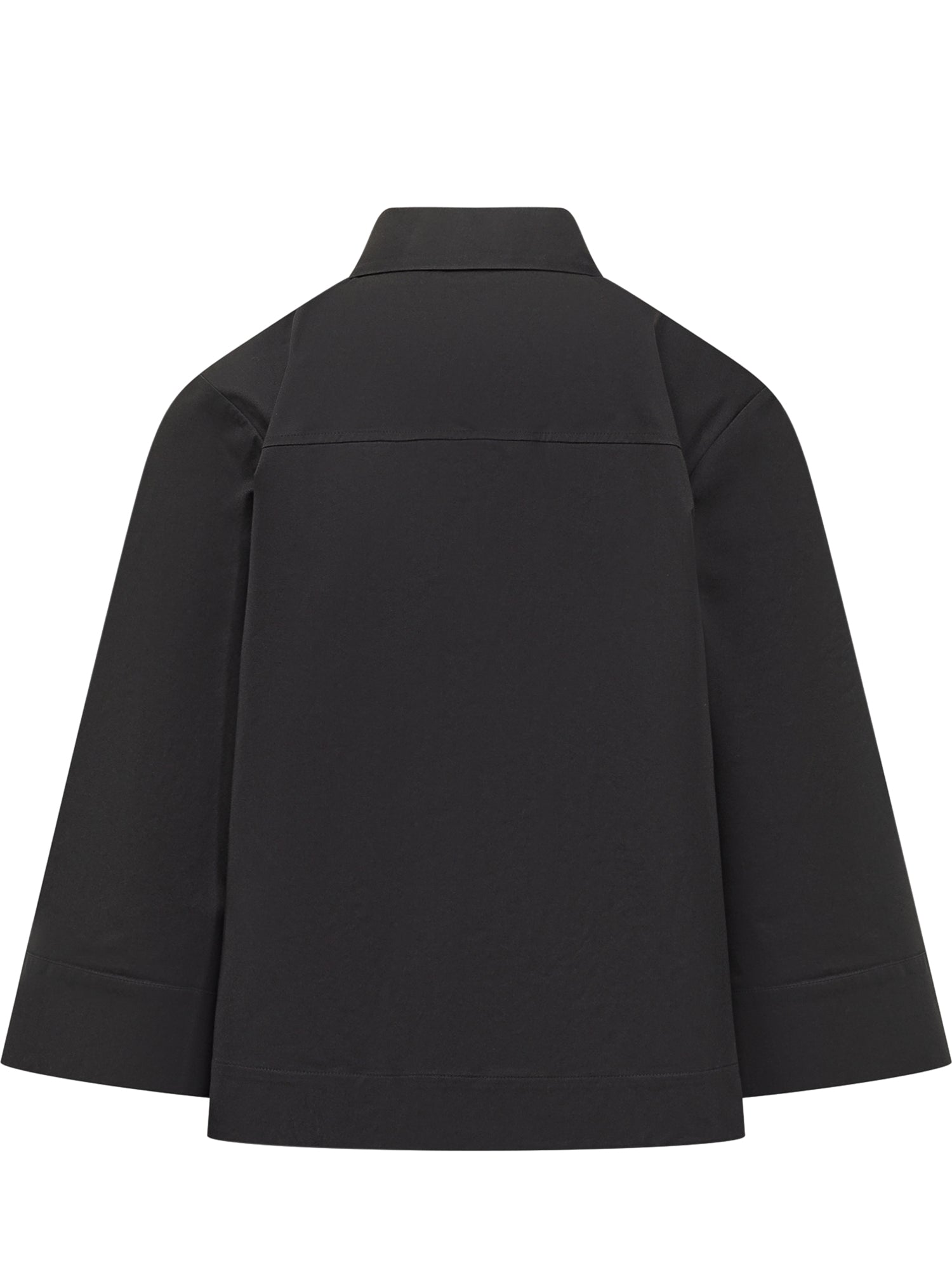Shirt with classic collar and front button closure. Style with wide three quarter sleeves and patch pocket on the chest with contrasting trim, straight cut and clean design.