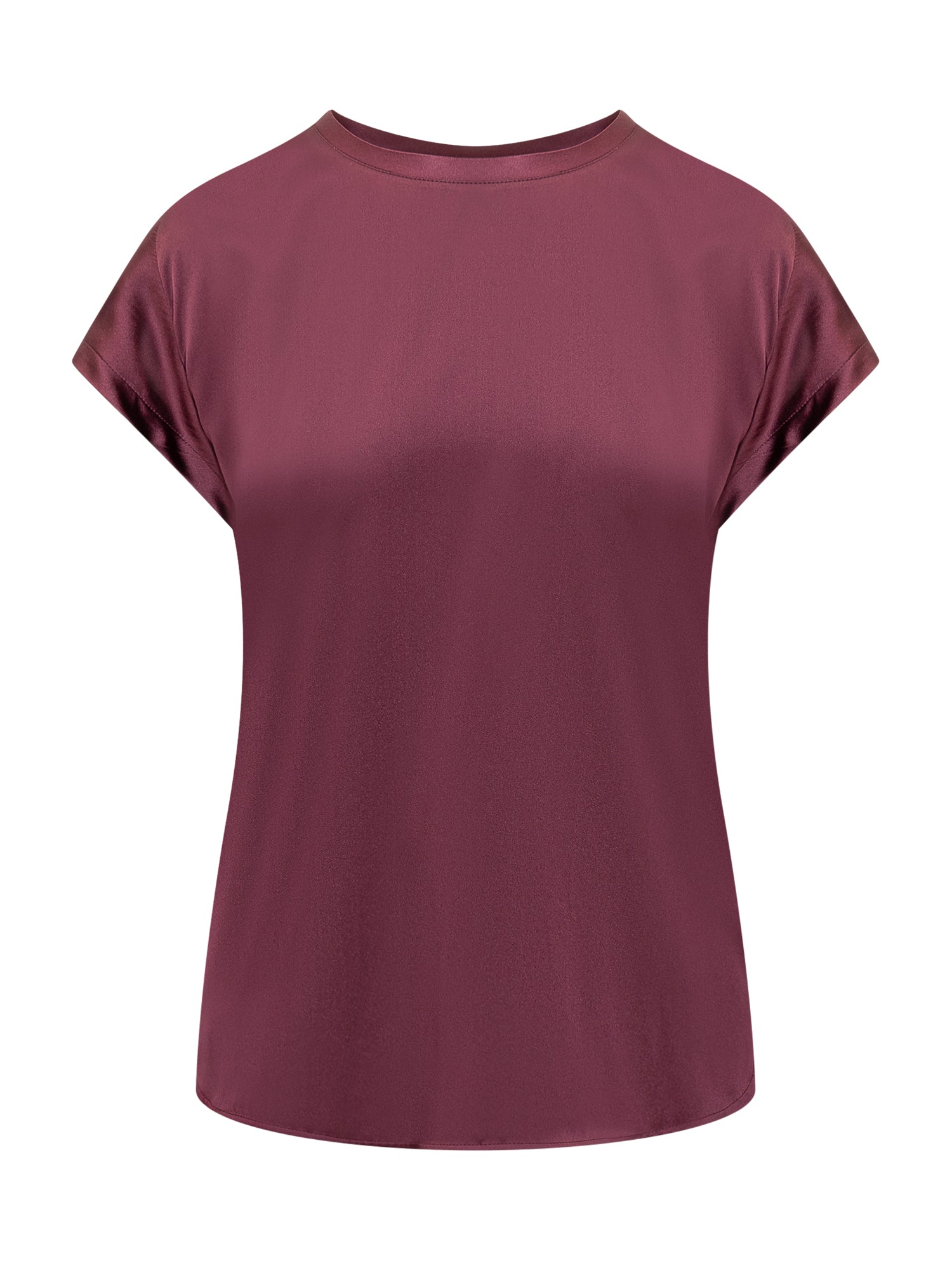 Blouse bordeaux silk. Short sleeves. Crew neck.