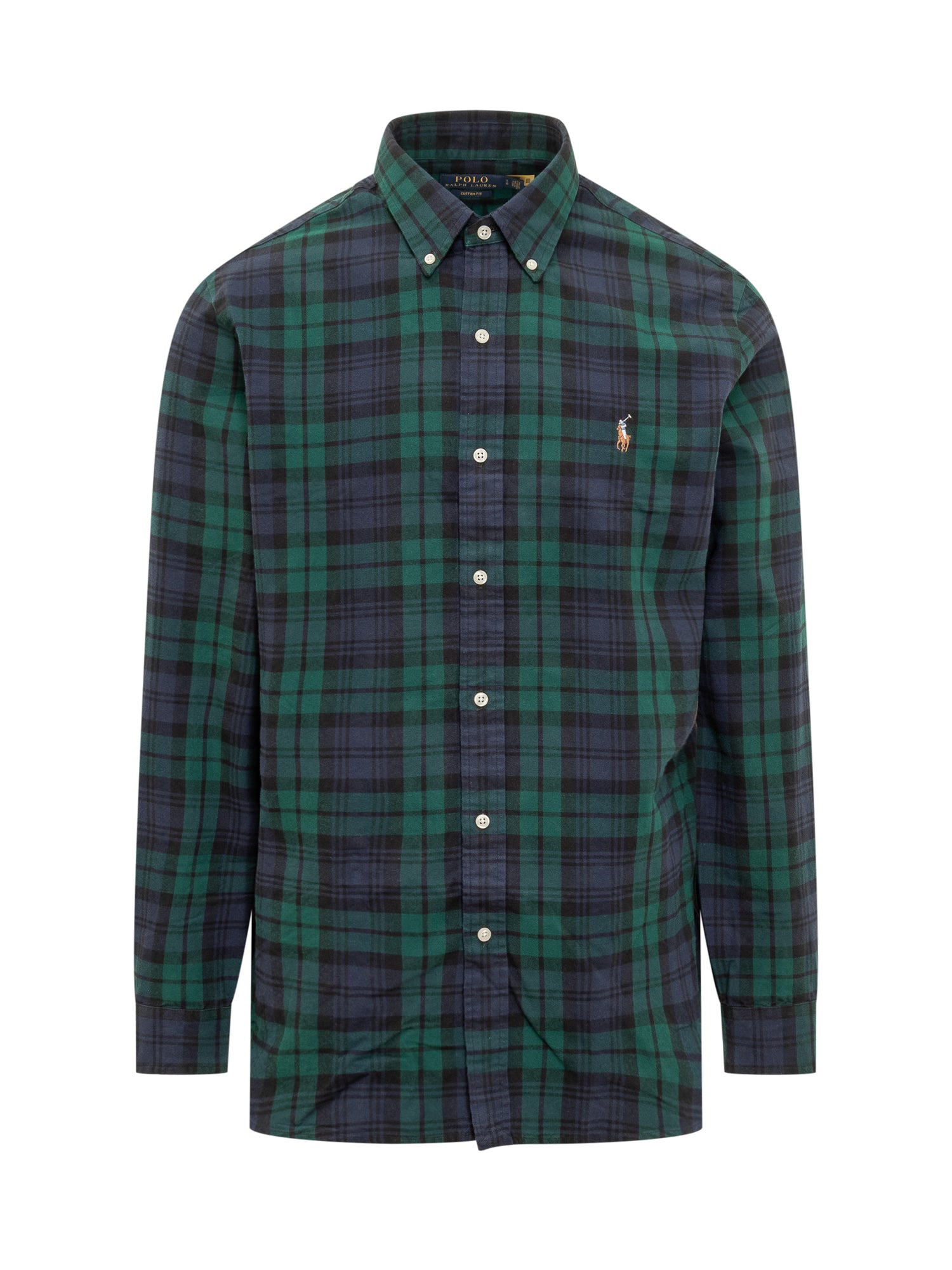 Plaid shirt with long sleeves. Front closure with buttons. Embroidered logo on the chest. Buttons at the cuffs.
