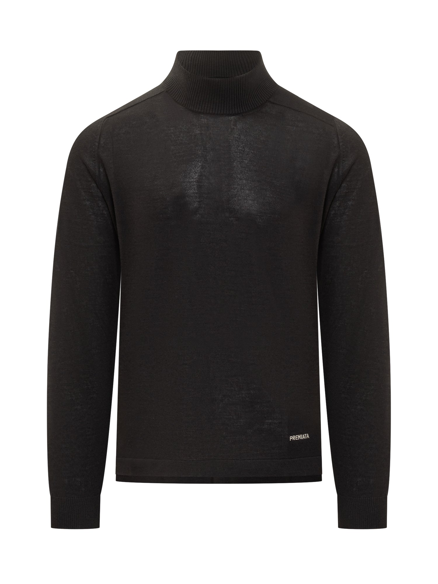 Premiata black long-sleeve turtleneck sweater with ribbed collar. Made from lightweight breathable fabric.