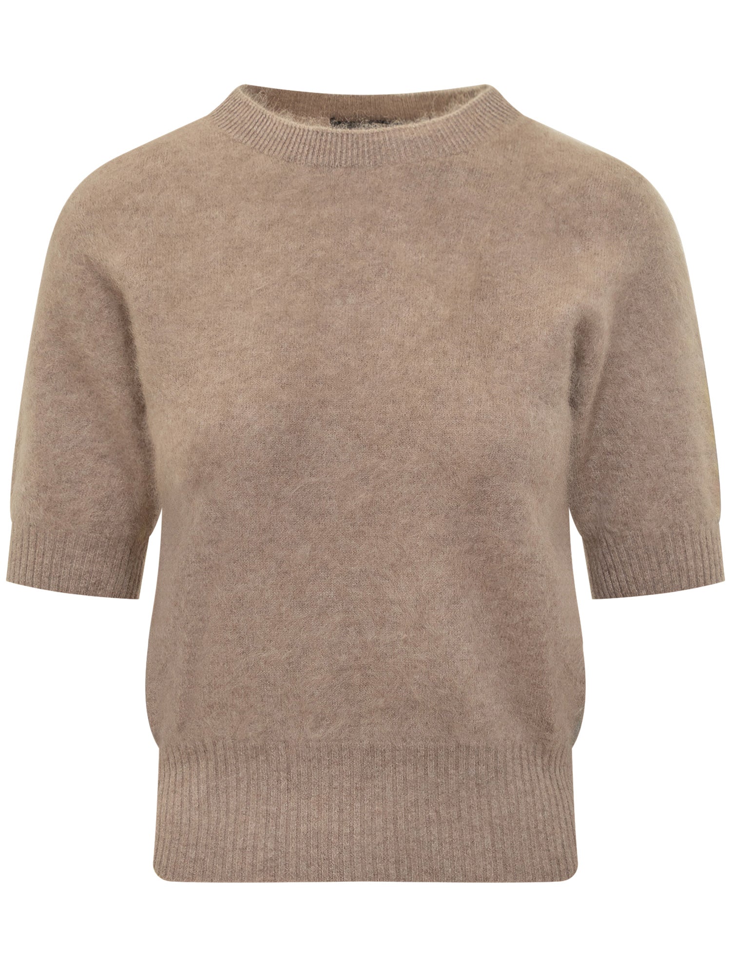 Seventy 19.70 camel wool sweater featuring a crew neck and short sleeves.