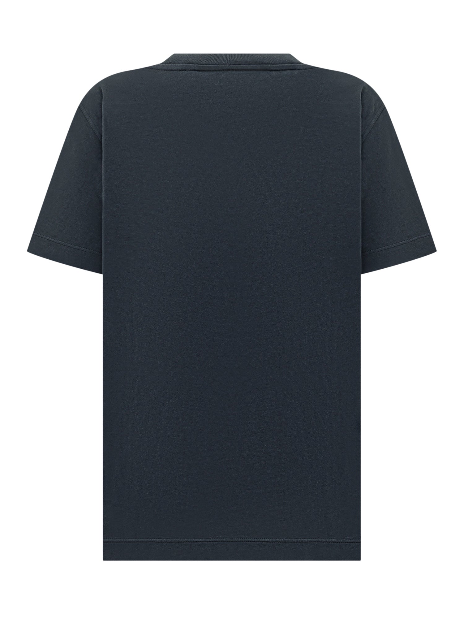 Stone Island Kids blue cotton T-shirt featuring the iconic embroidered logo on the front. A trendy casual piece.