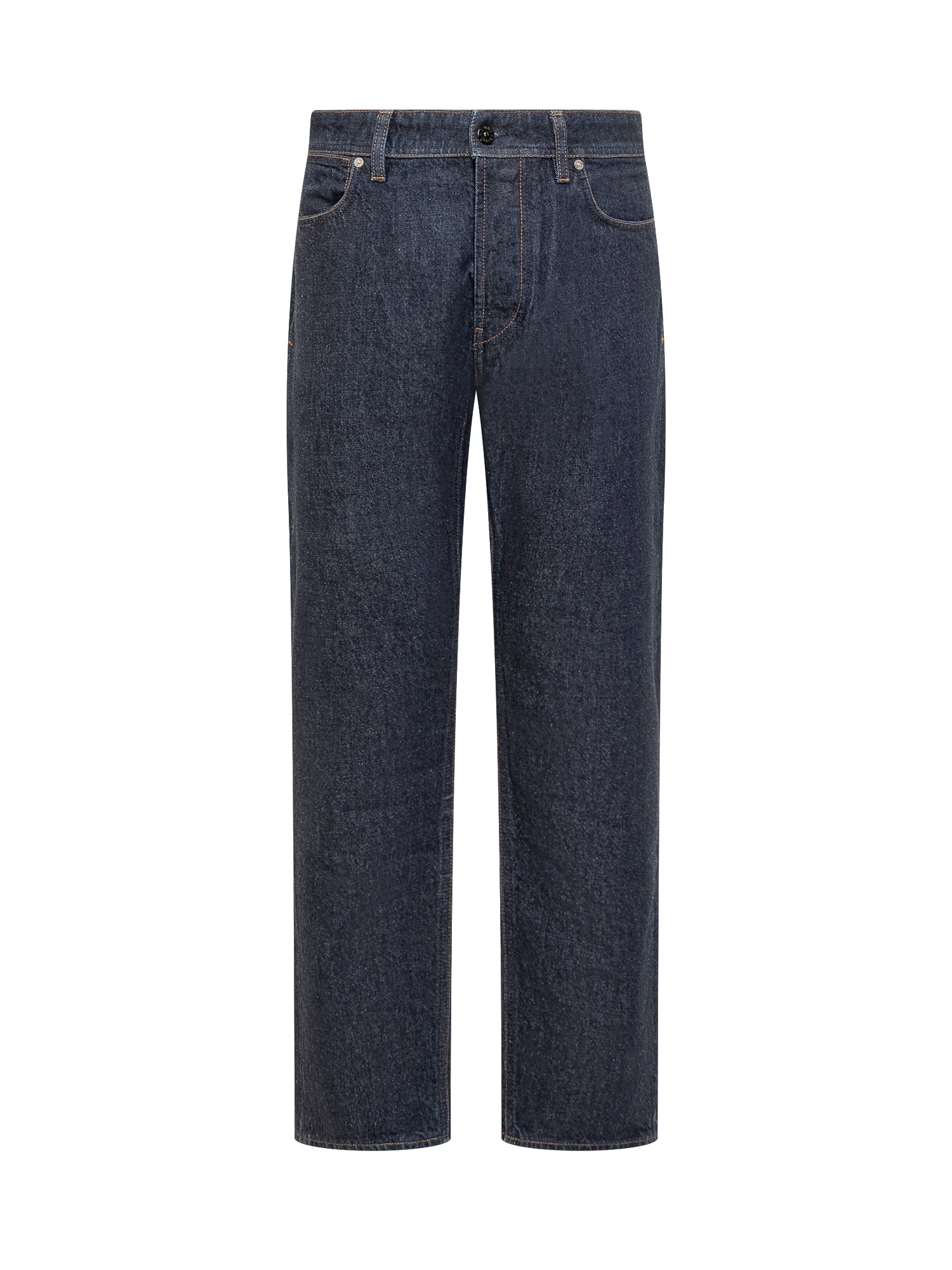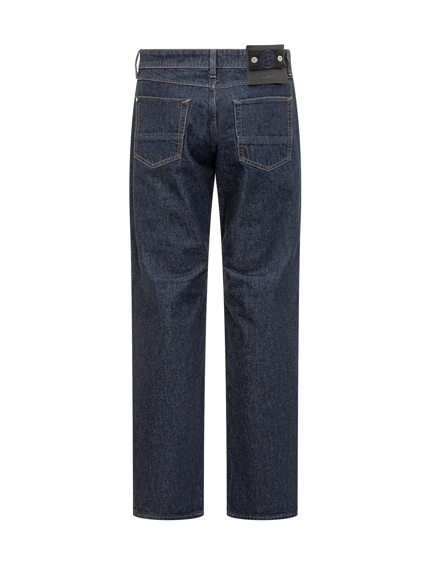 Stone Island straight leg jeans in blue denim with contrast stitching and logo patch on the back.