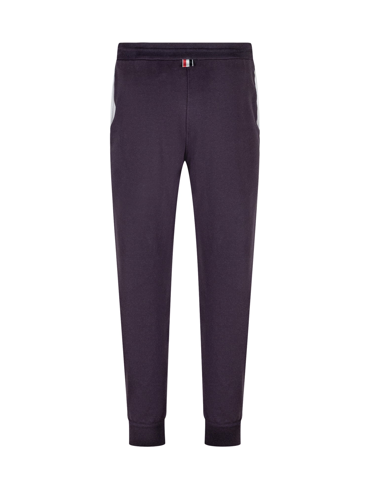 Sporty trousers. Elasticated waist with drawstring. Side pockets. Bicolor model. 4-bar logo on the leg. Tongue with striped grosgrain loop on the back.
