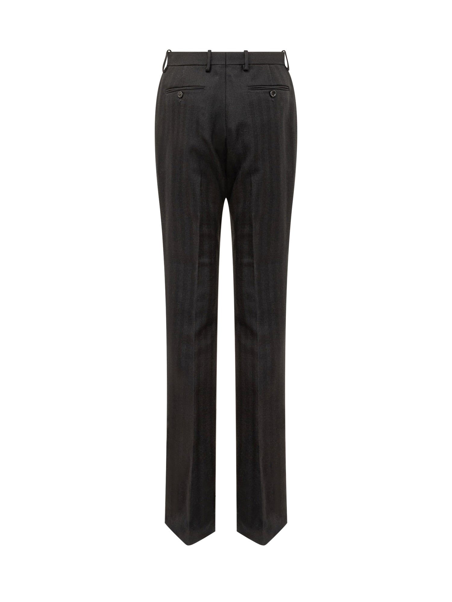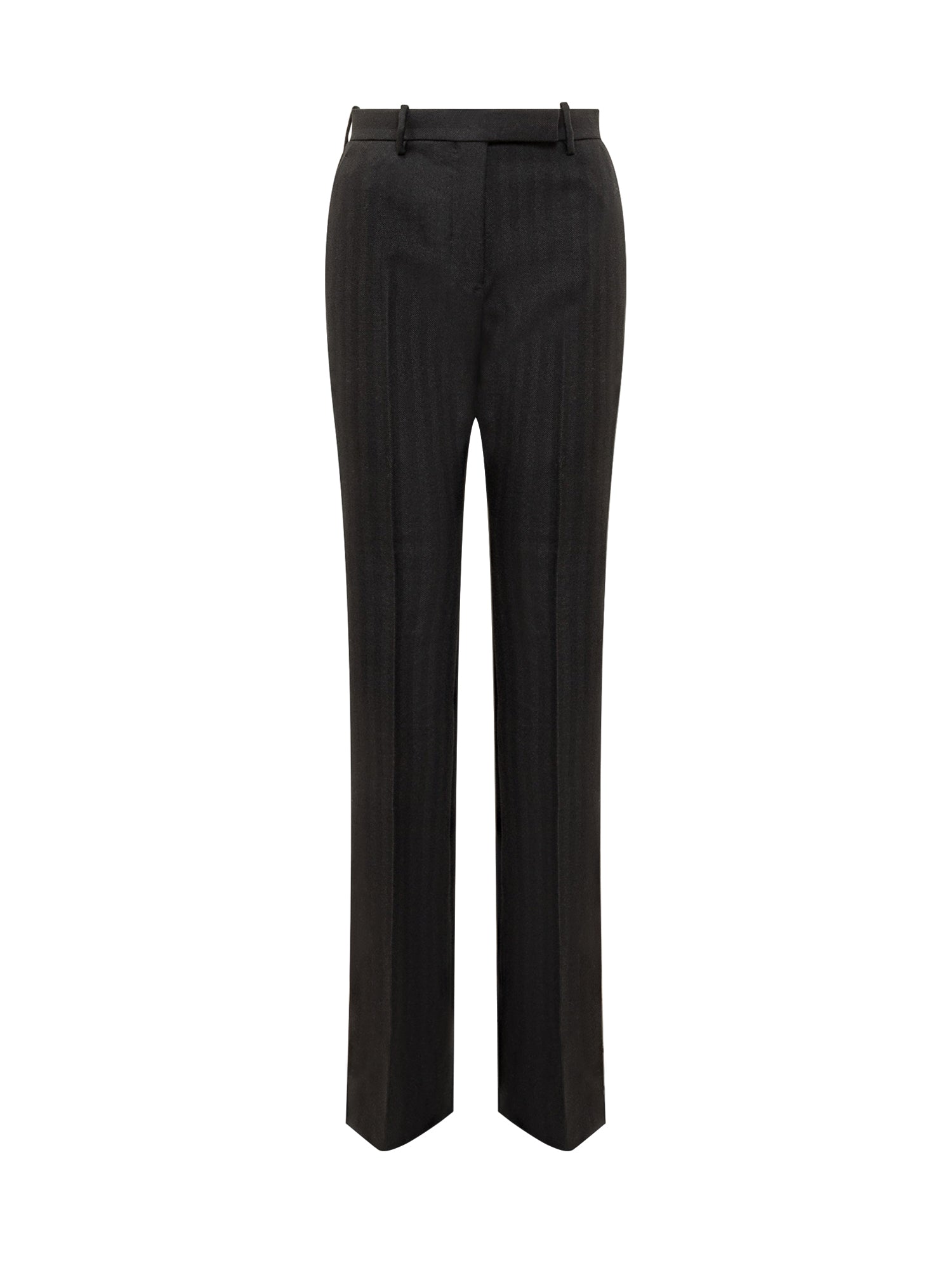 Tom Ford black wool trousers with straight leg and regular waist. Elegant and minimal design with central crease.