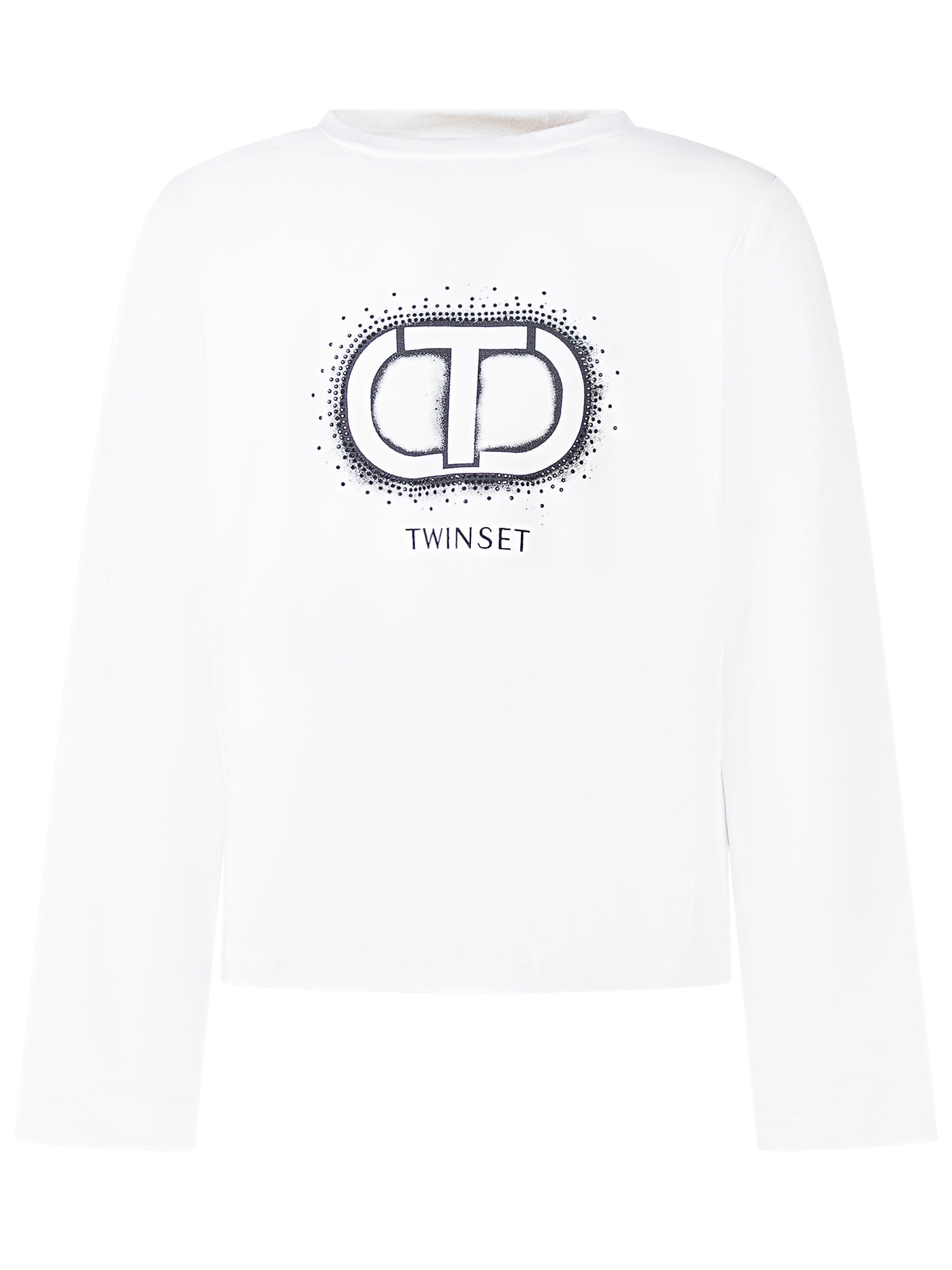 Twinset Kids long-sleeved T-shirt in white cotton, featuring a bold embroidered logo with contrast details.