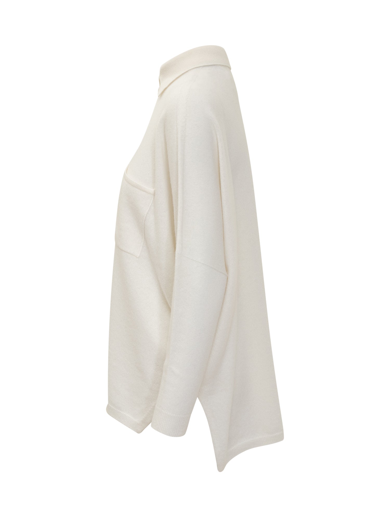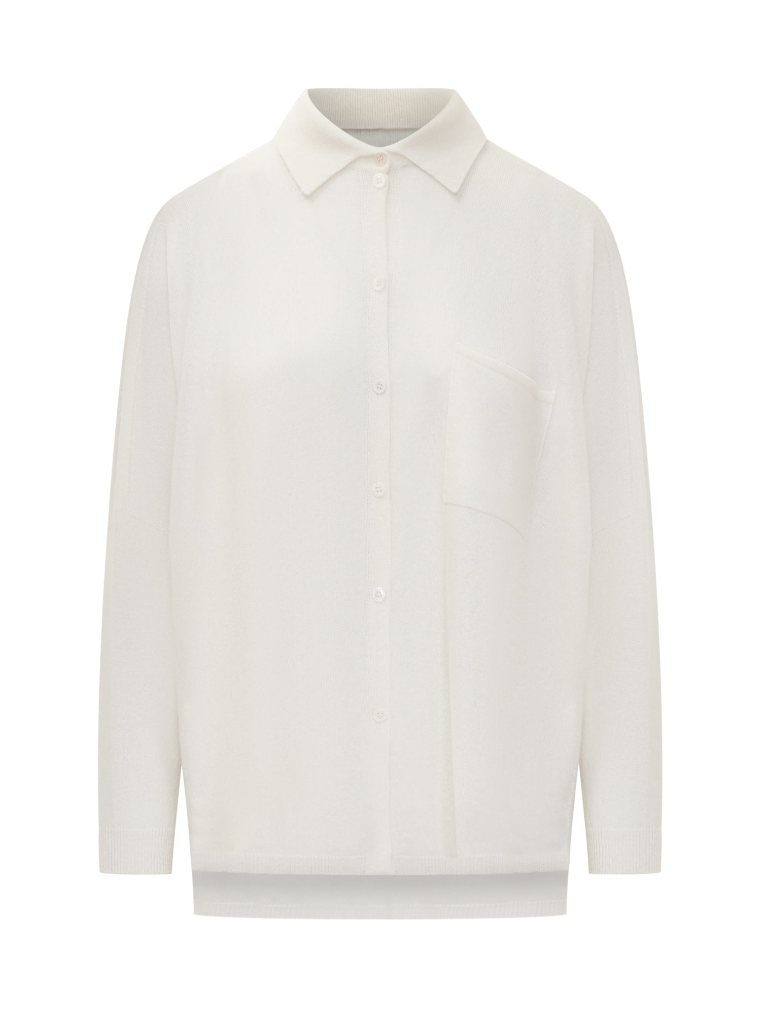 Vanisè white knit shirt cardigan with front button closure and chest pocket.
