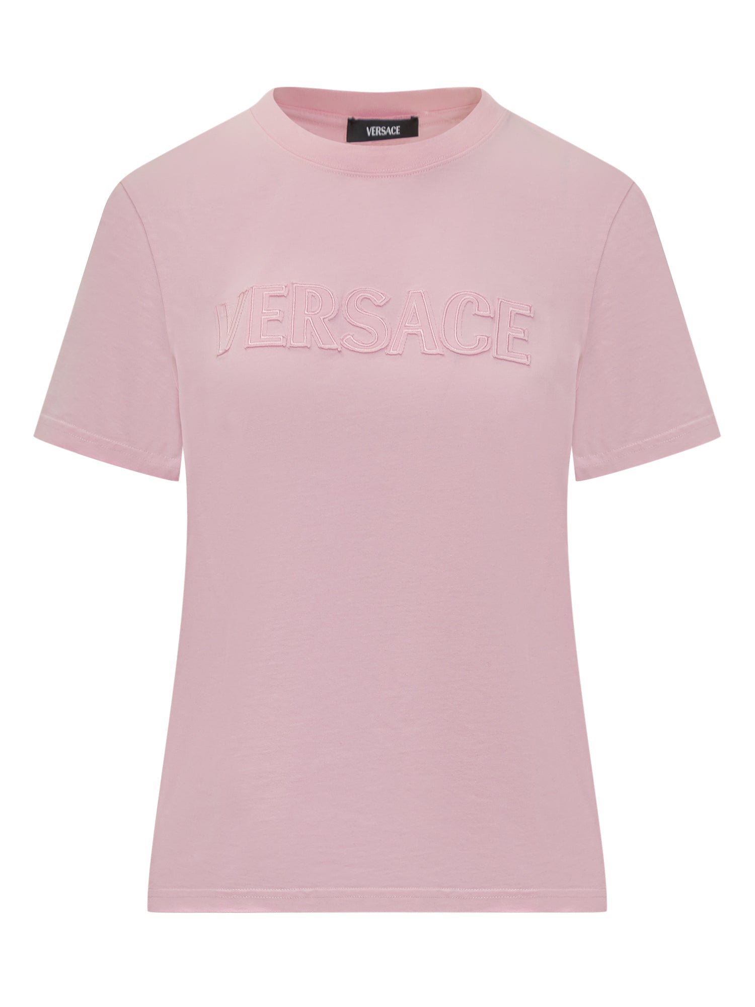 Pink T-Shirt. Embroidered logo. Crew neck. Short sleeves.