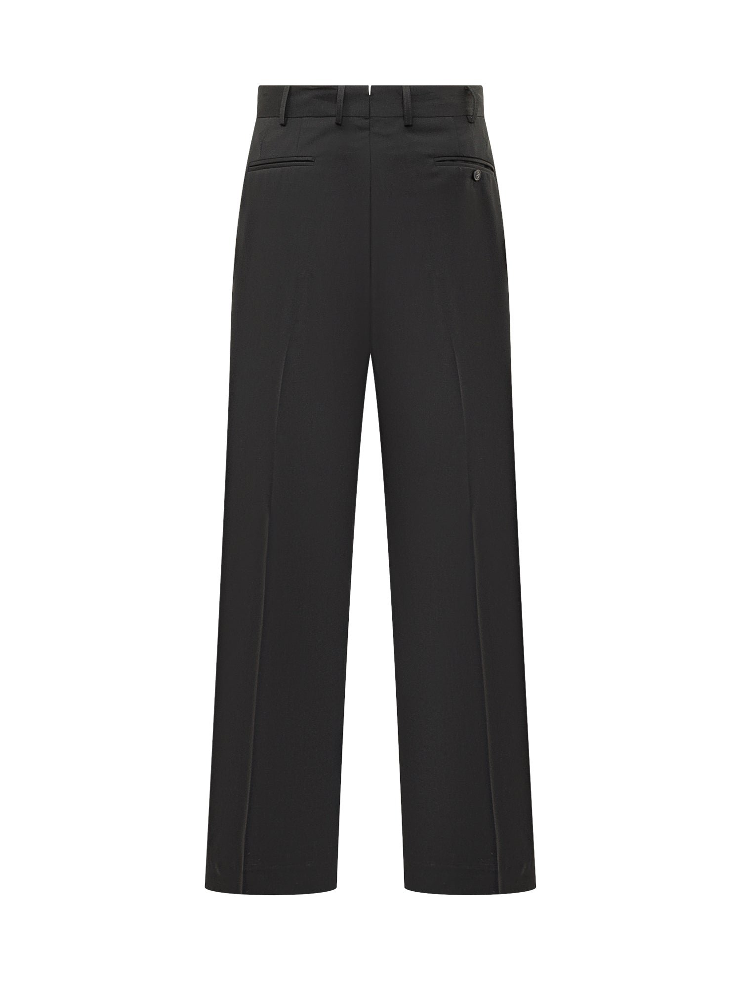 Black wide-leg trousers by A Paper Kid with front pleats and belt loops.