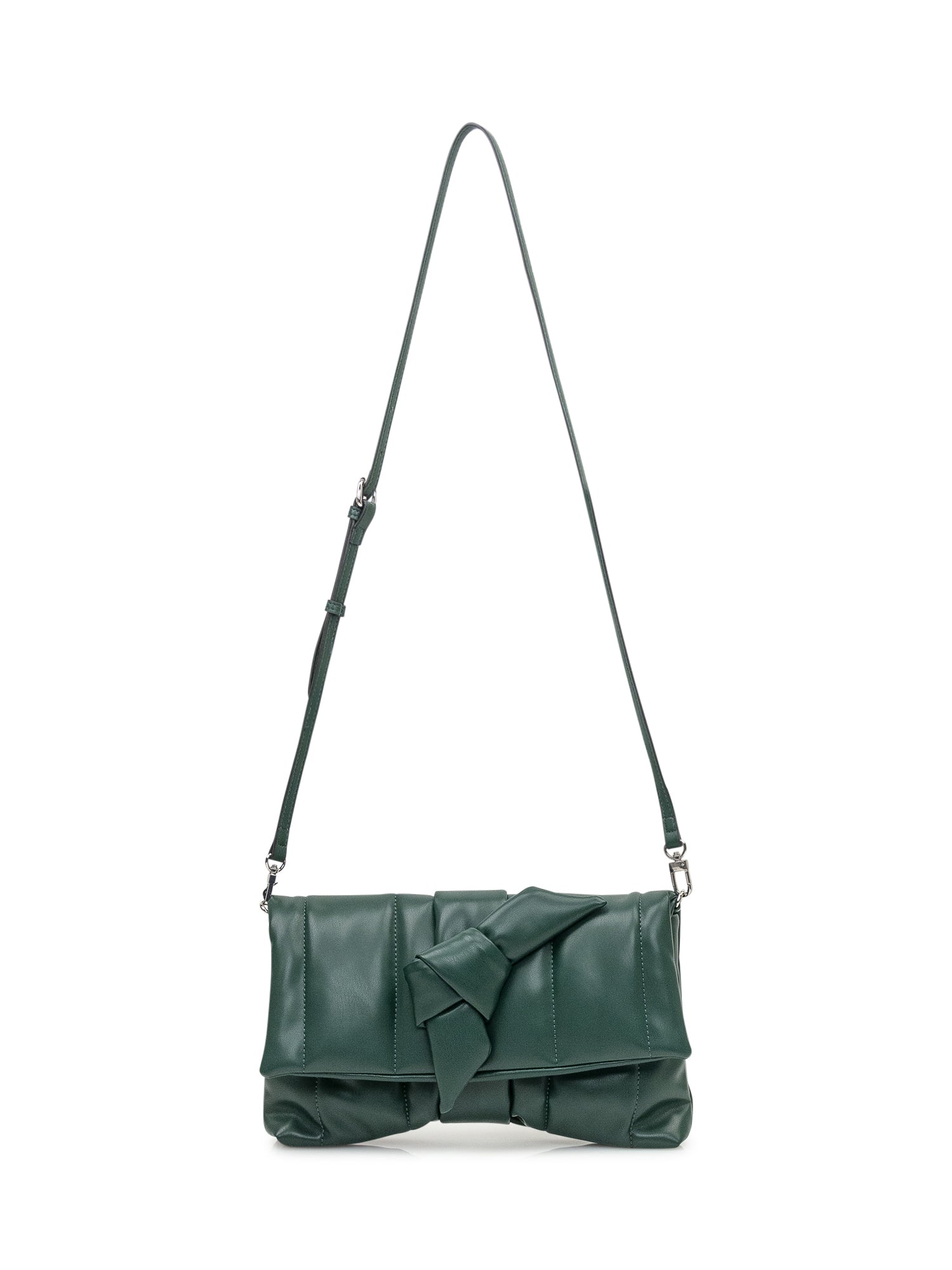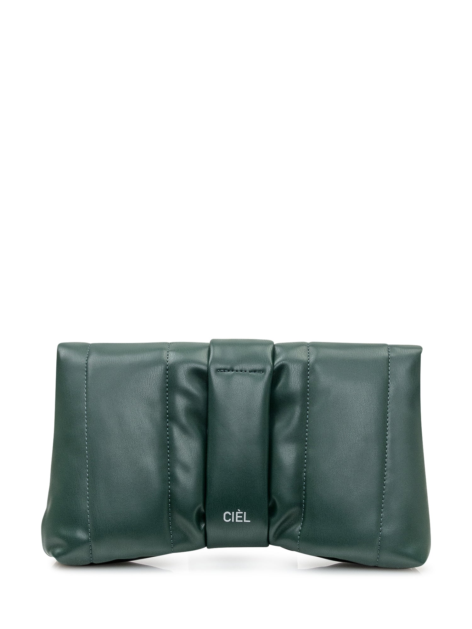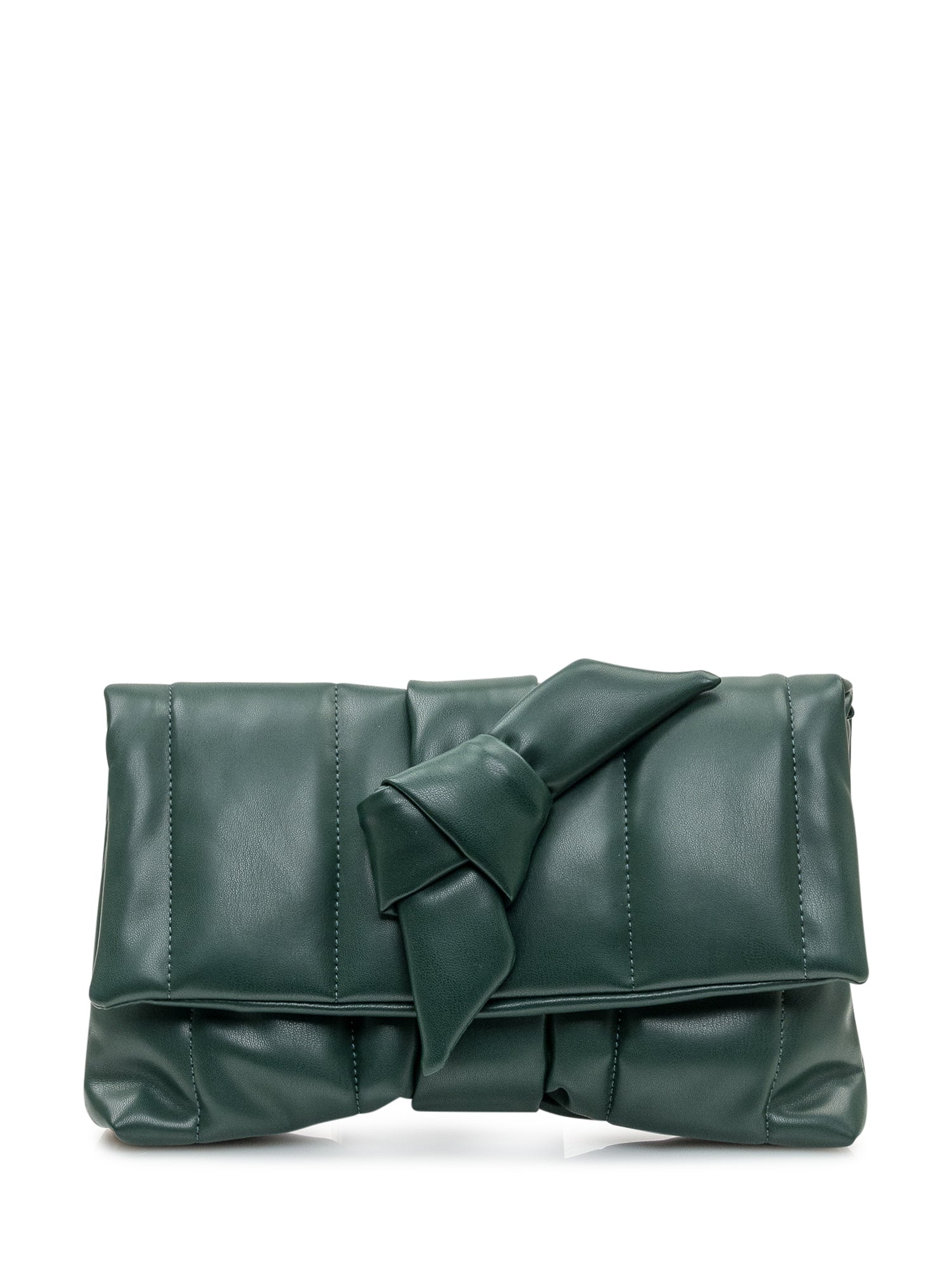 Ciel green quilted polyester clutch bag with front knot detail.