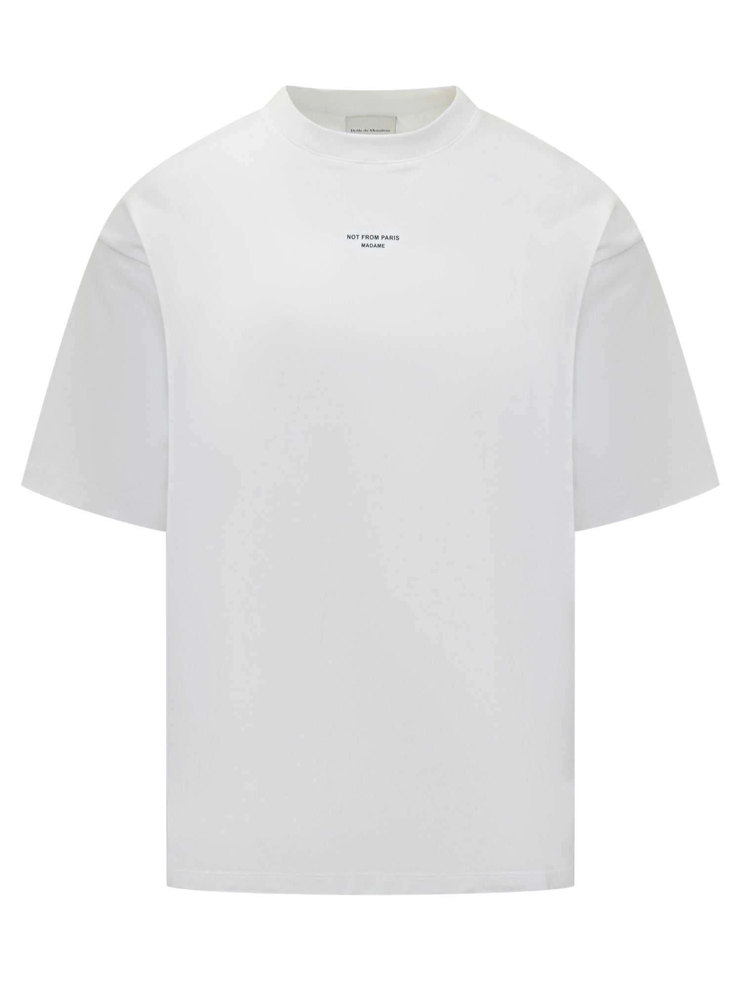 Short-sleeve cotton T-shirt with Not From Paris Madame embroidery on the chest.
