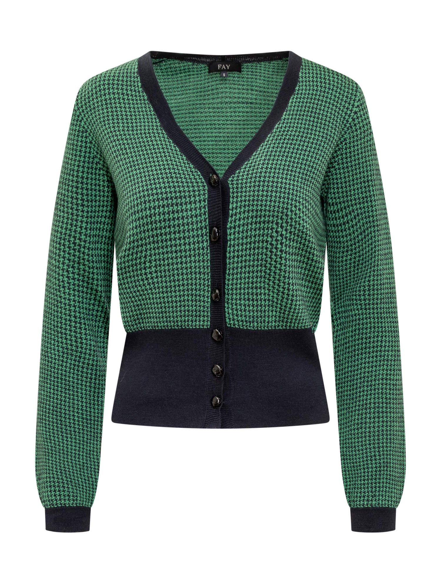 Long-sleeved cardigan. V-neck. Button closure. Ribbed bottom and cuffs. All-over Pied de Poule pattern.