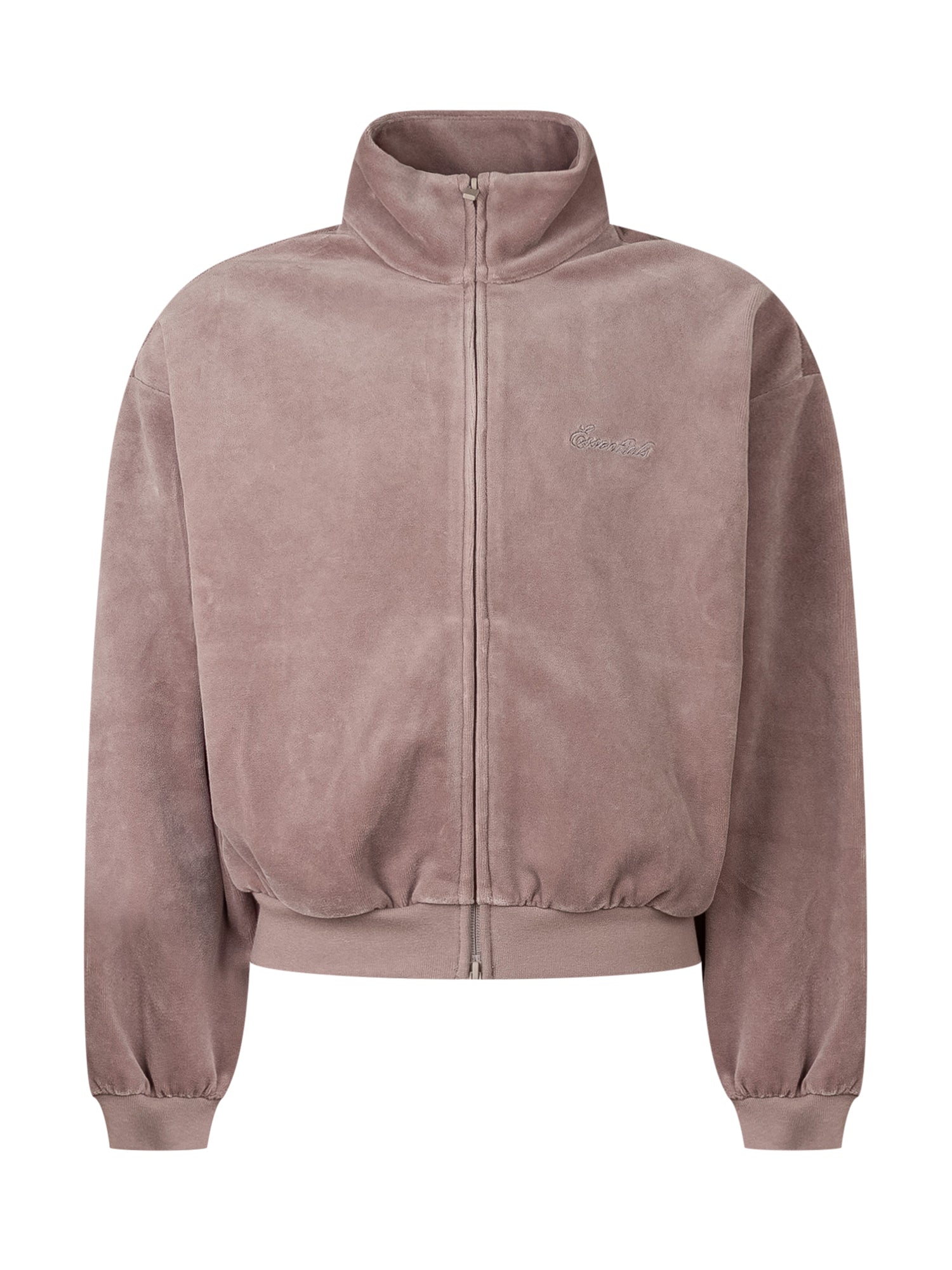 Track jacket in soft velvet-effect fabric with full zip and stand collar.