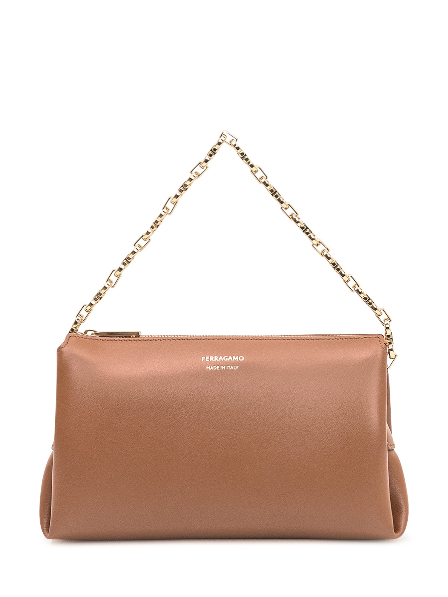 Elegant soft-leather shoulder bag featuring a sleek silhouette and a metallic chain handle.Size: 9.06x5.91x2.76
