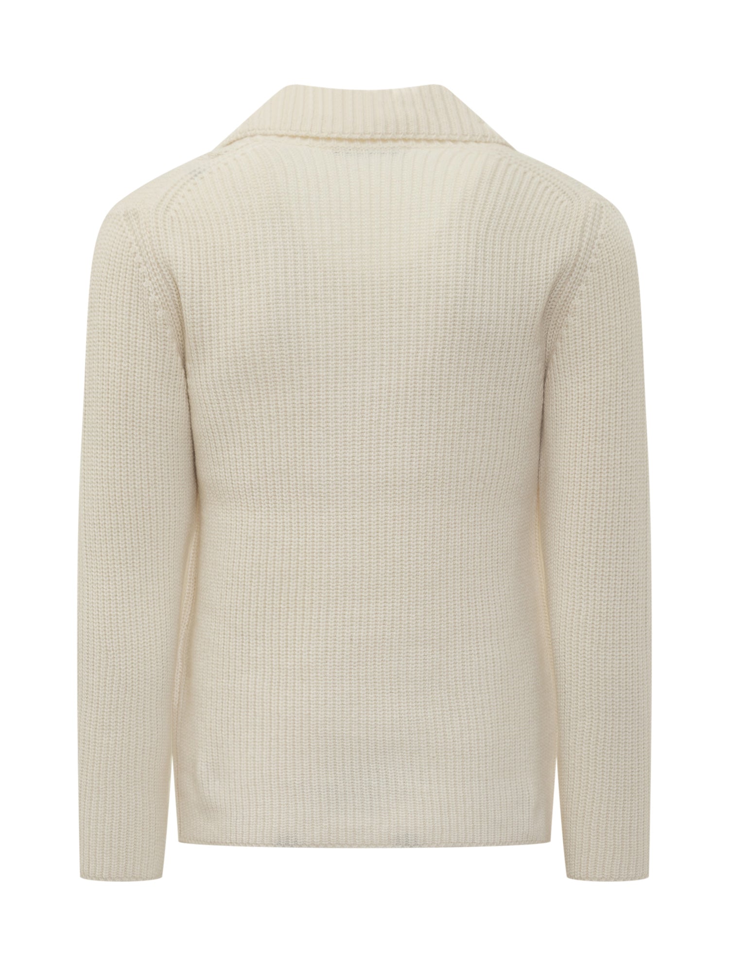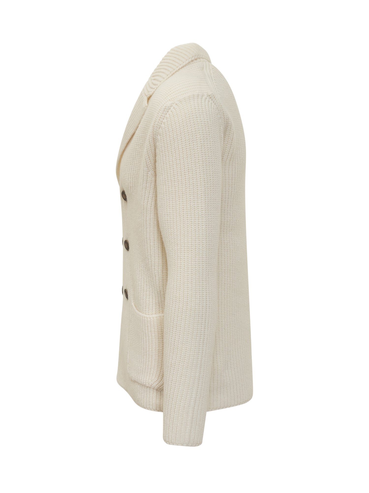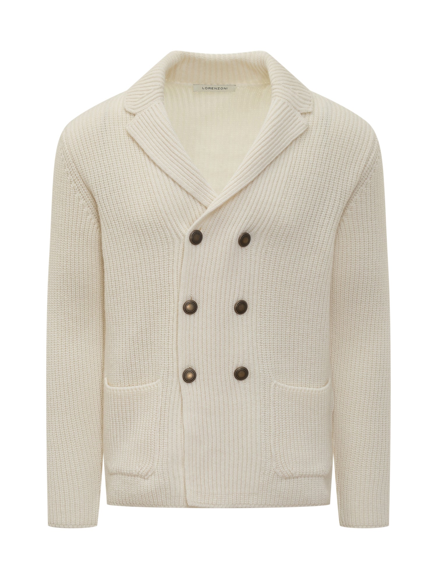 Lorenzoni Ivory Double-Breasted Wool Cardigan