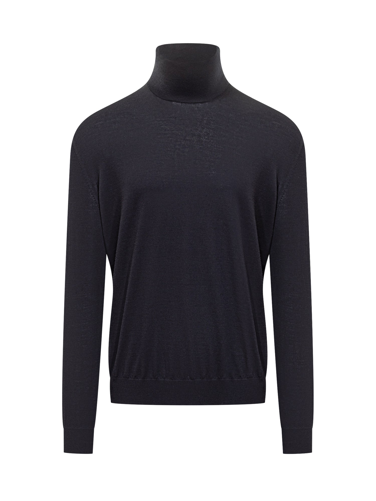 Malo blue turtleneck in lightweight wool, featuring a sleek and refined design.