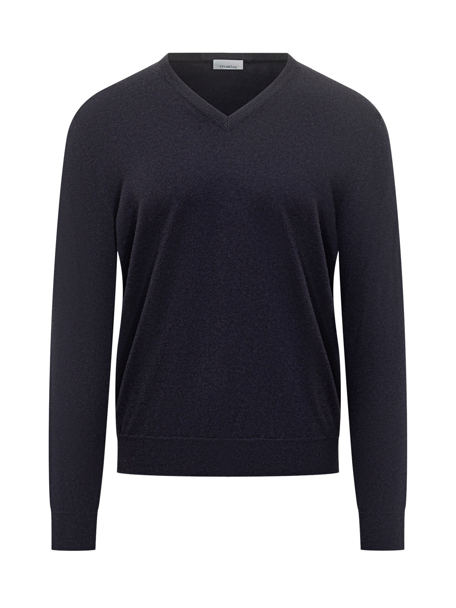 Malo pure cashmere blue V-neck sweater. Elegant and versatile, perfect for casual chic.