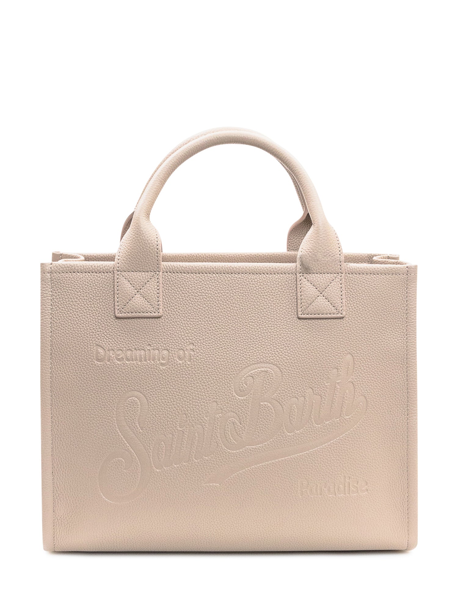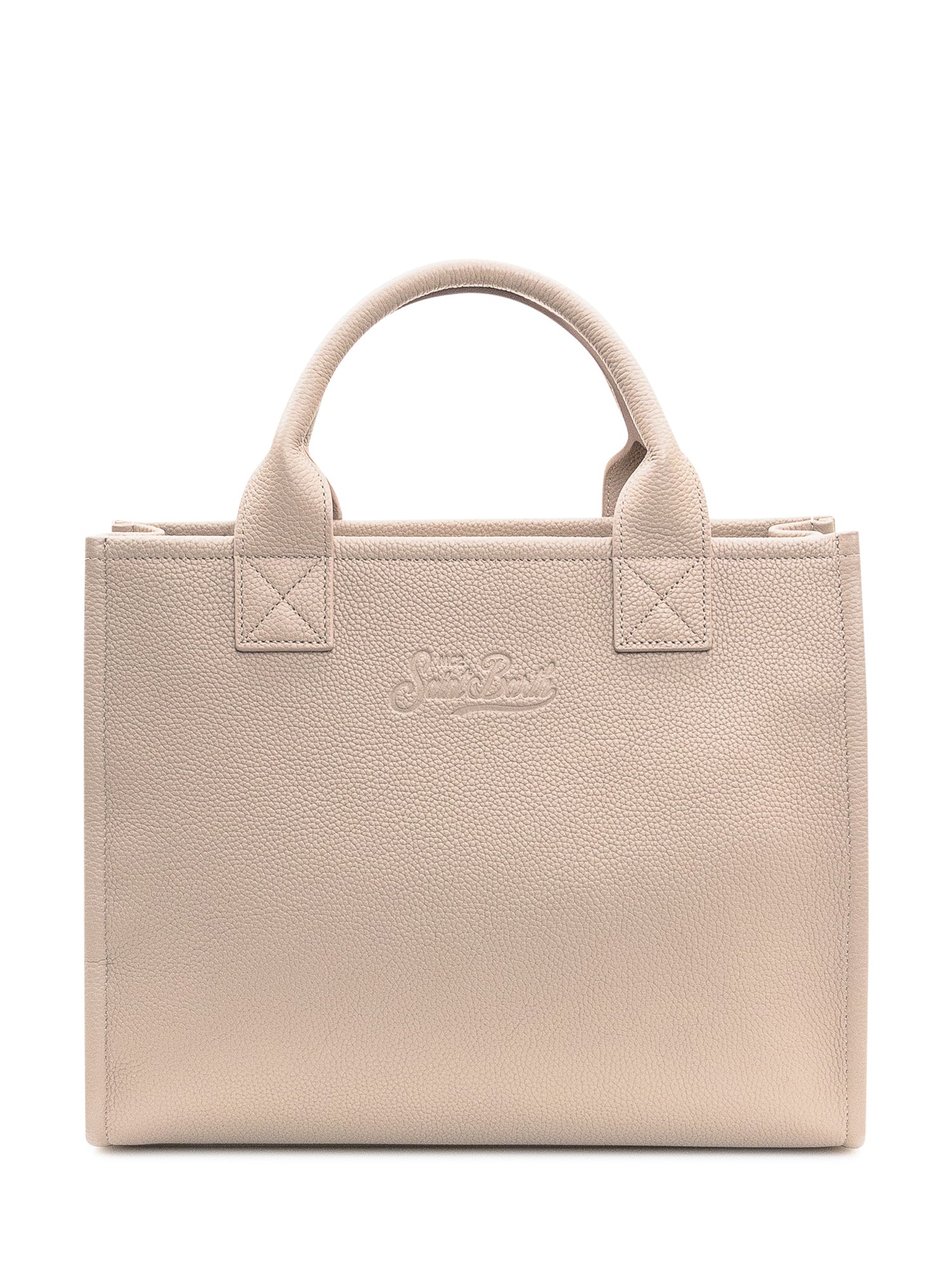 MC2 Saint Barth Vanity Bag Large in textured beige leather with embossed logo.