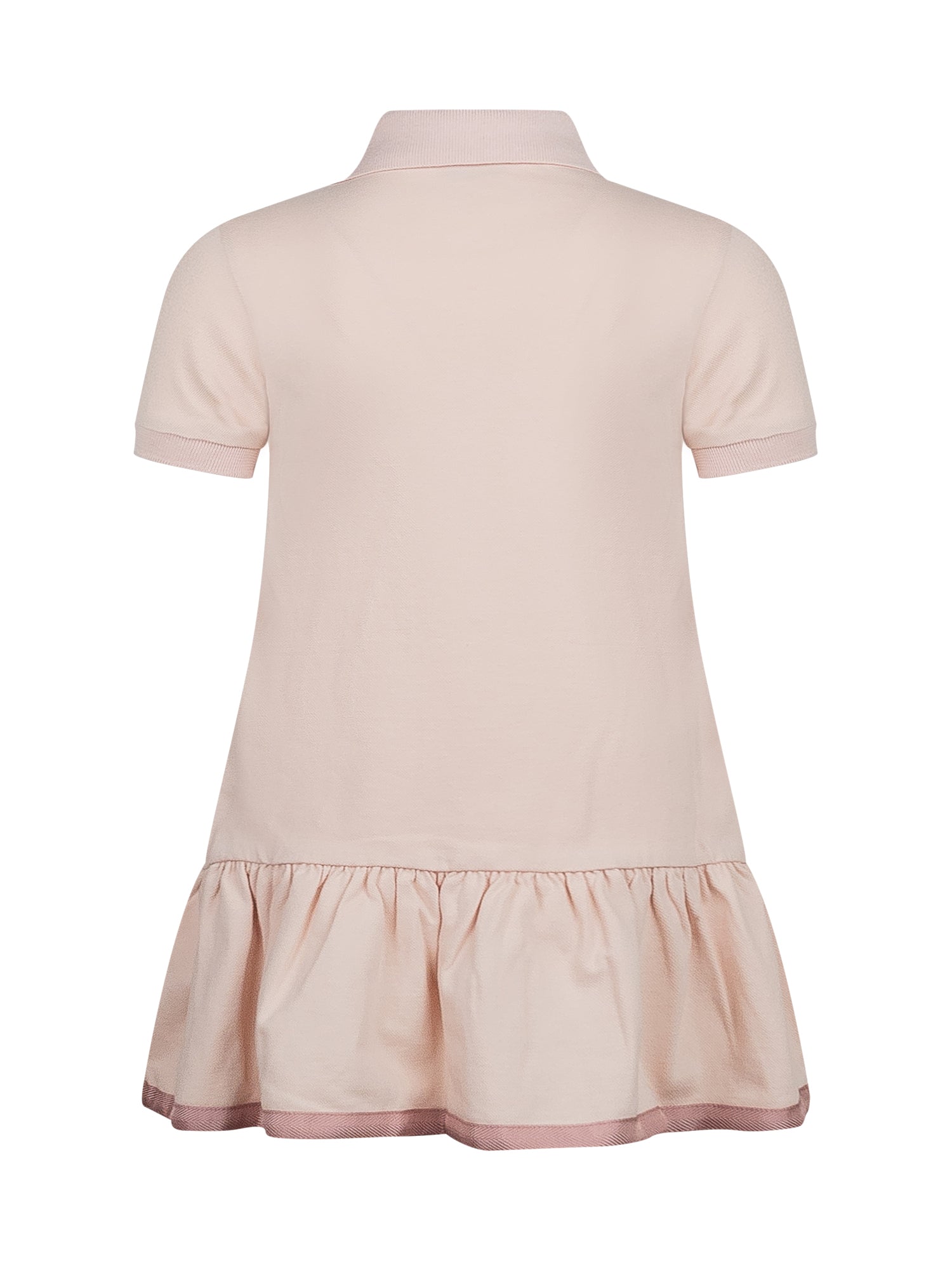 Pink dress. Polo collar. Short sleeves. Button fastening.