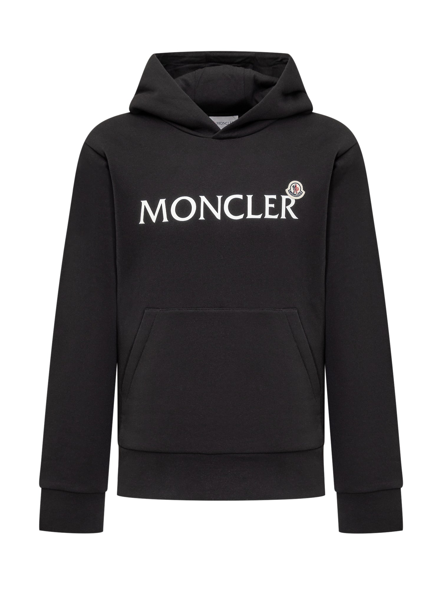 Long-sleeved hooded sweatshirt. Ribbed hems. Single pocket on front. Logo patch print on front.