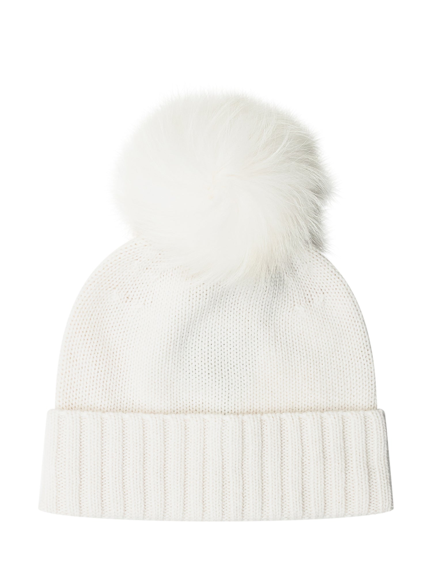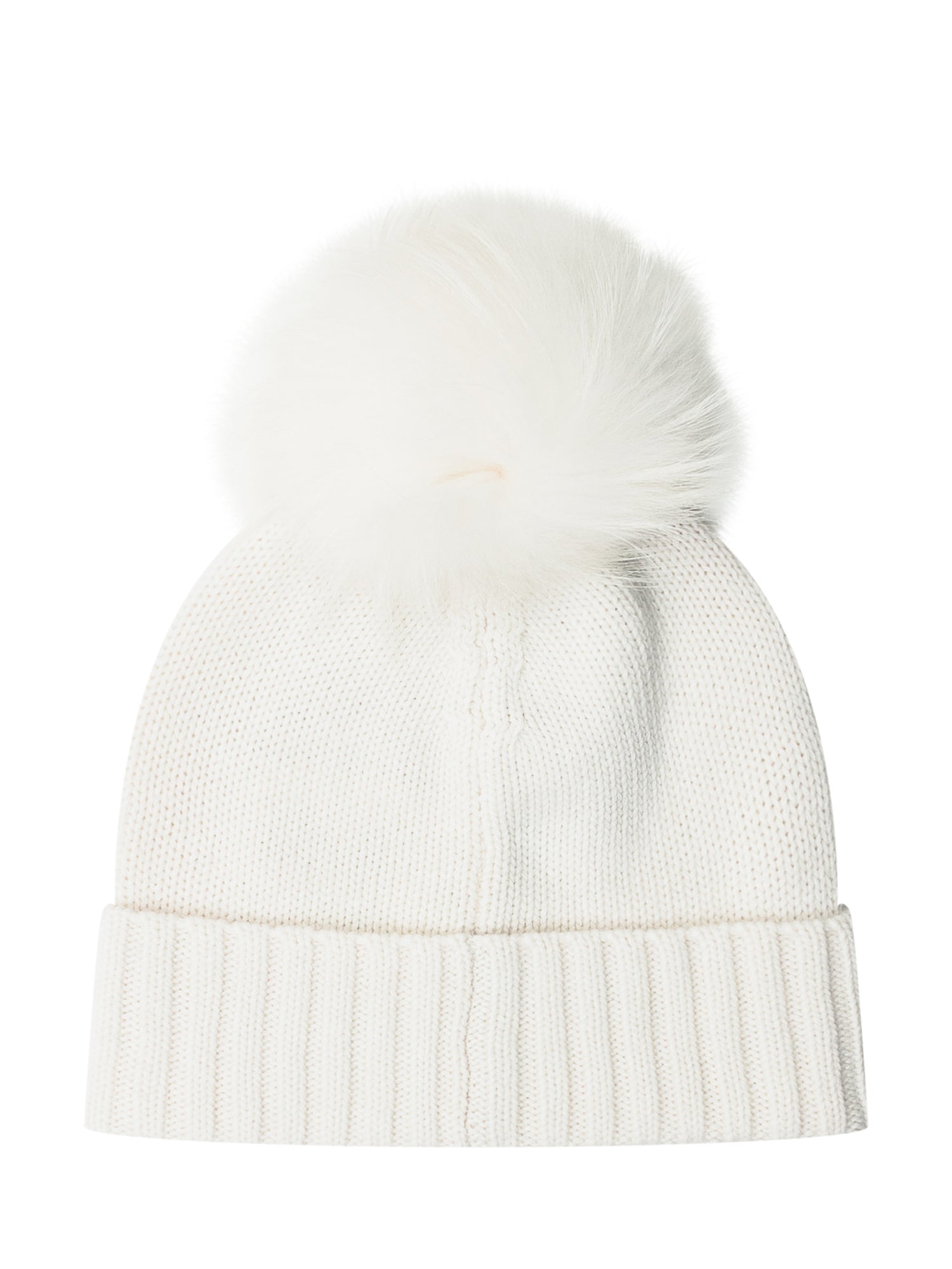 Nima 1708 white knit hat with matching fur pom-pom.
