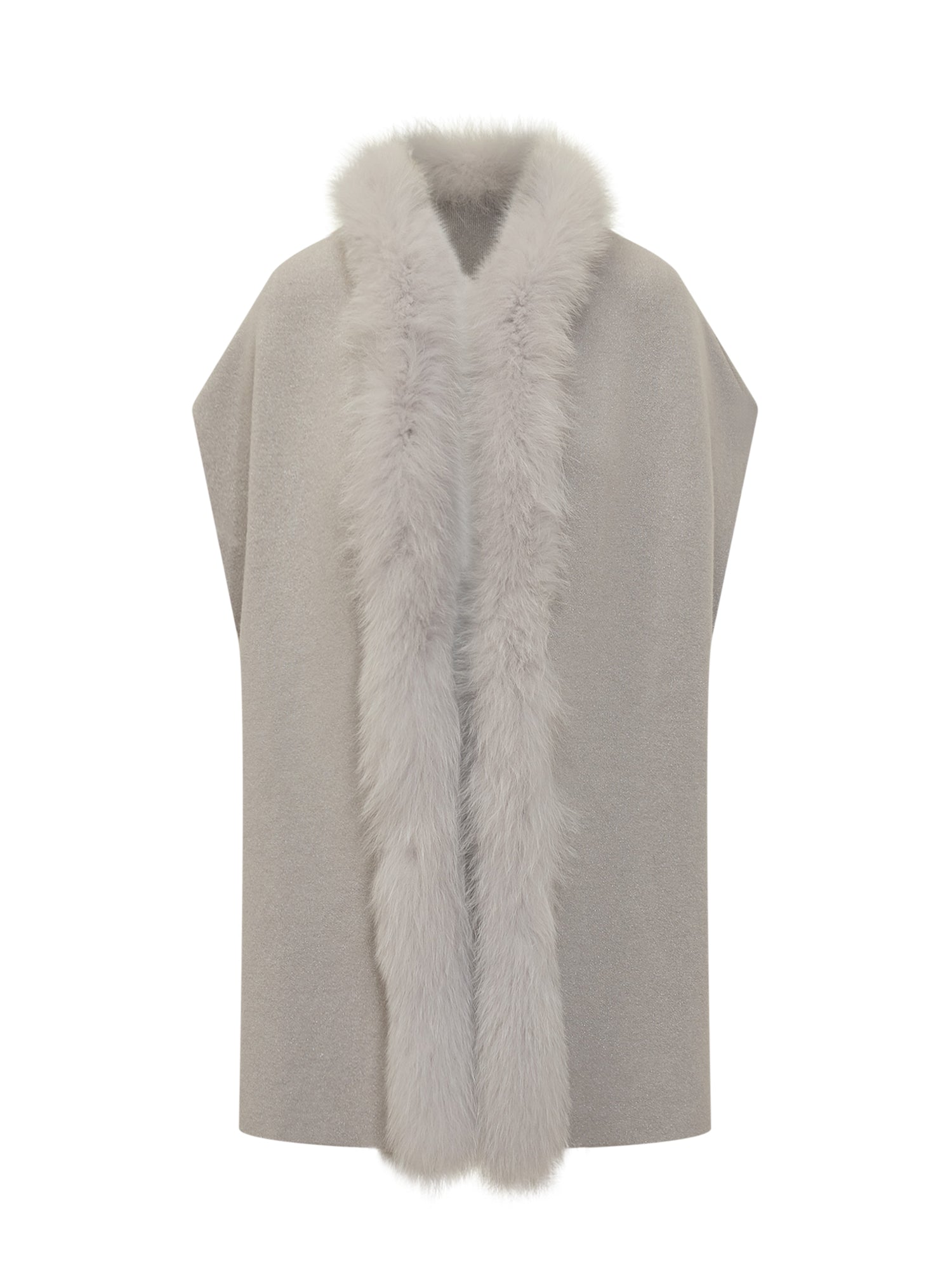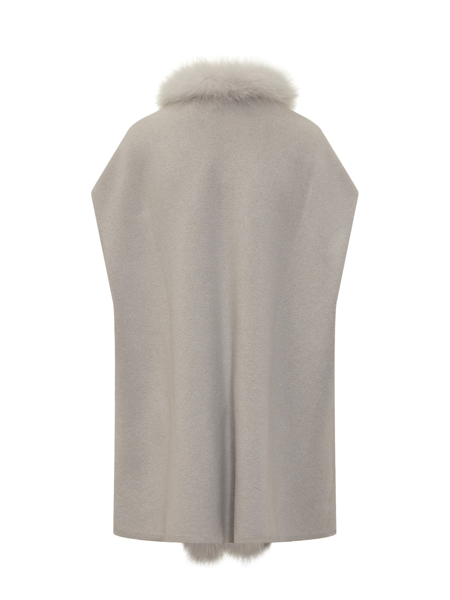 Nima light beige knit cape with elegant fur trim.