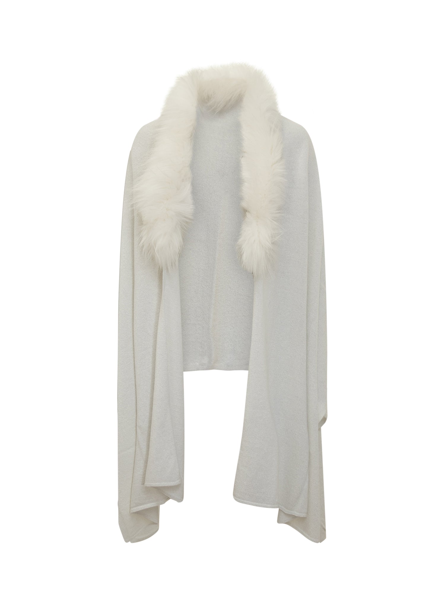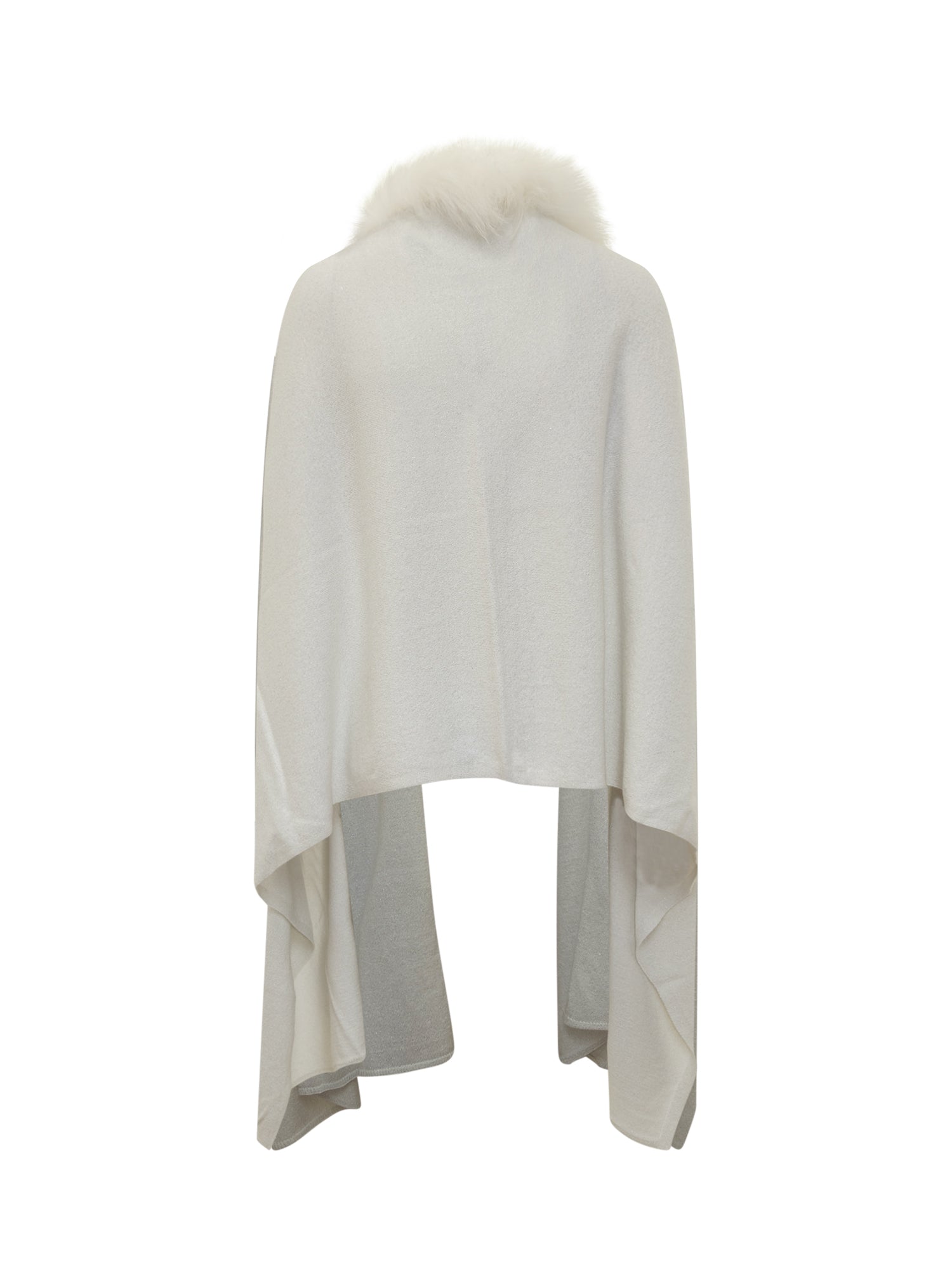 Refined Nima knit cape in cream with real fur collar.