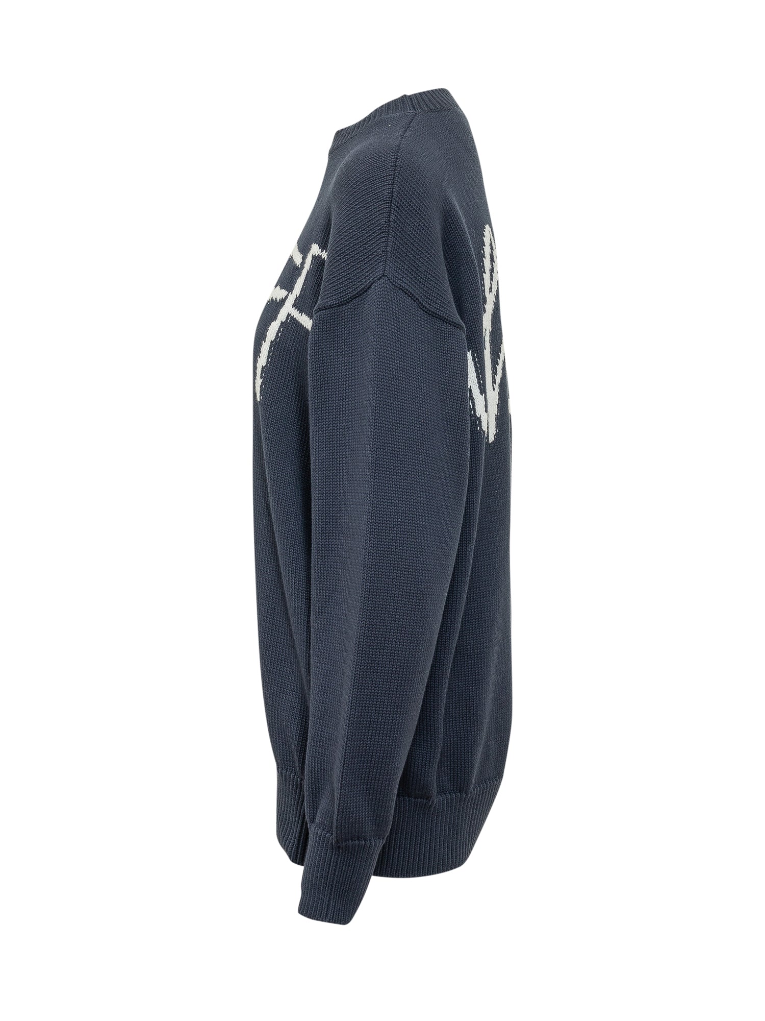 Crewneck sweater in soft knit with contrasting graphic logo on front and back. Relaxed fit with long sleeves and ribbed trims.