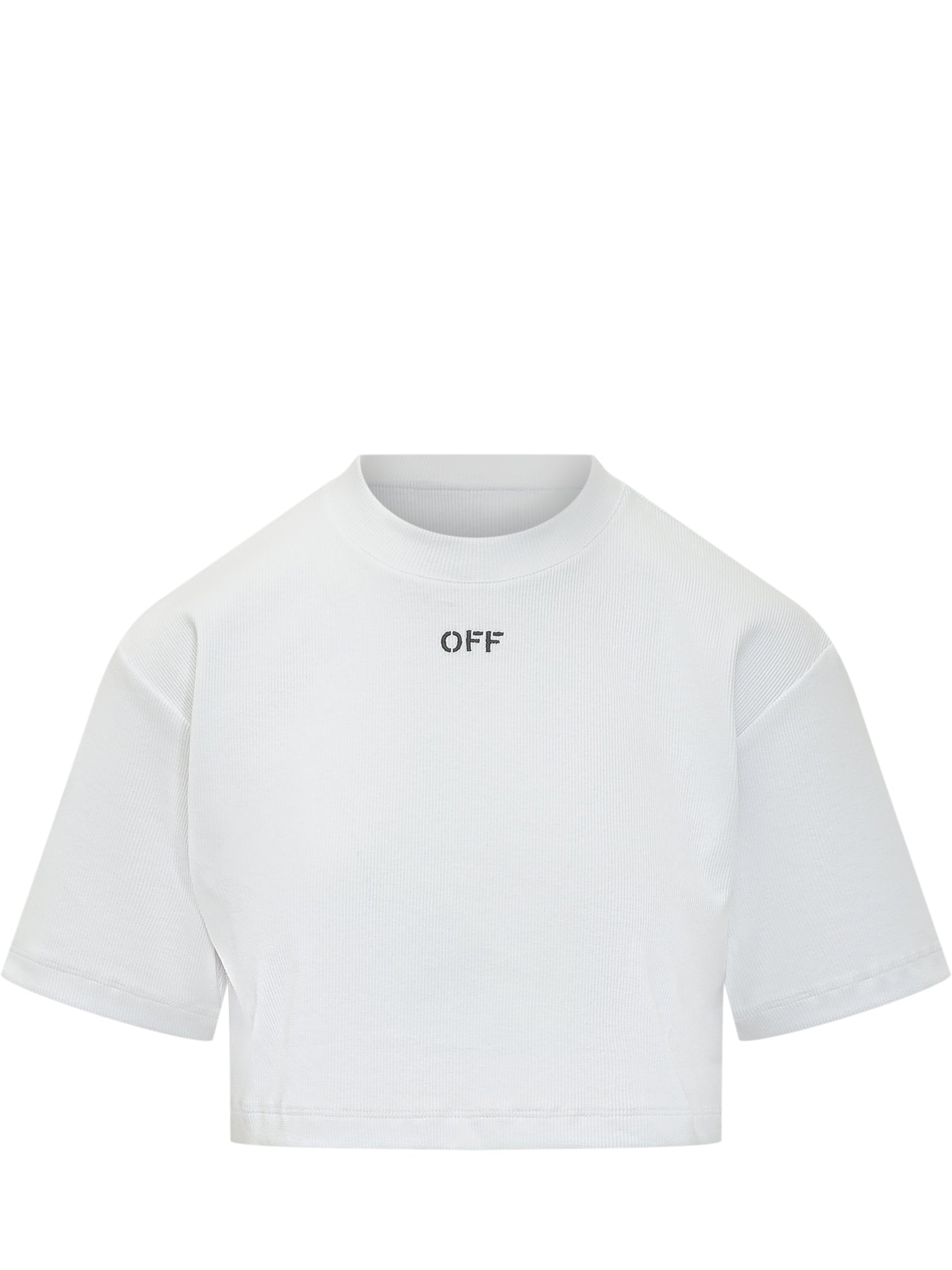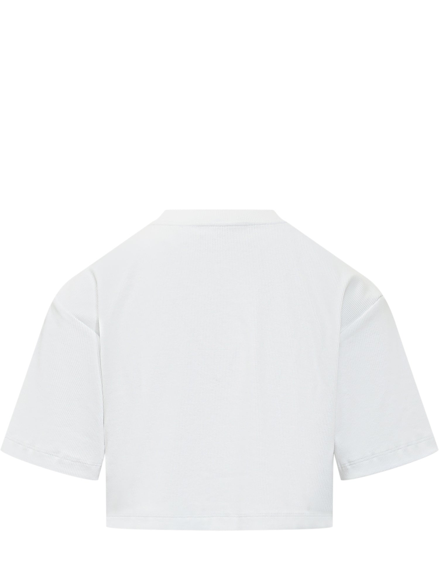 Cropped ribbed T-shirt with small front embroidery. Fitted silhouette with short sleeves and sporty finish.