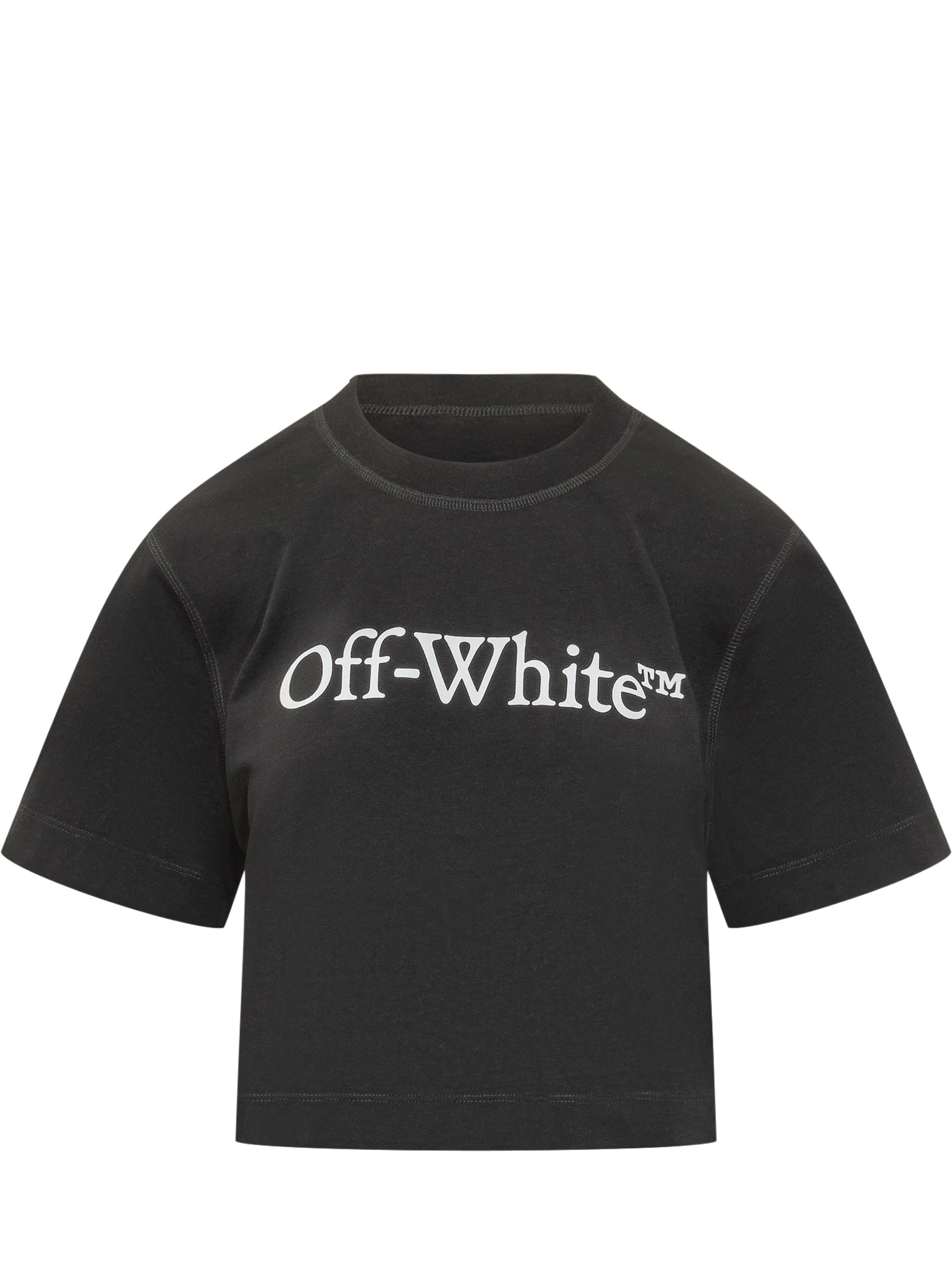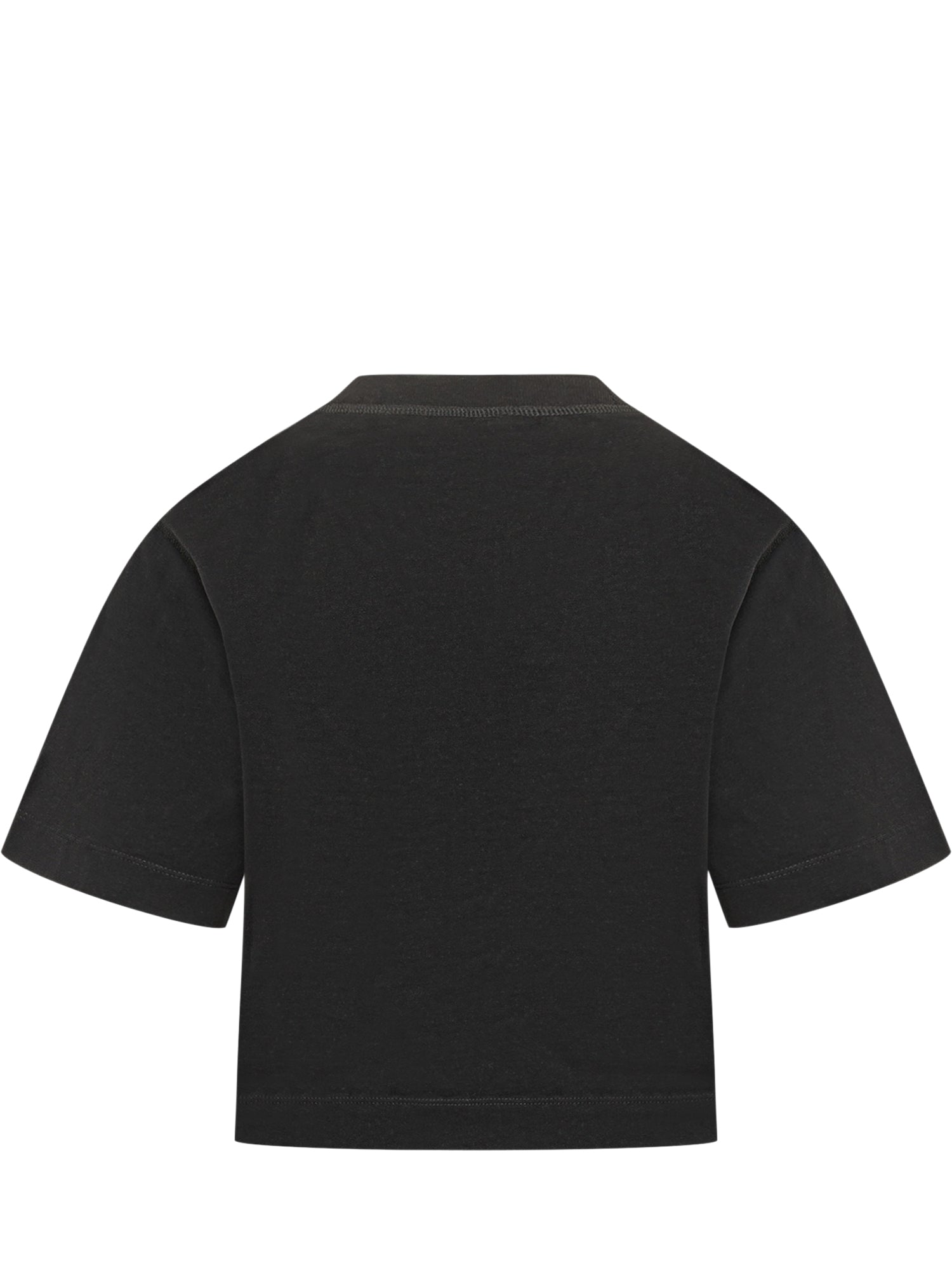 Cropped cotton T-shirt with bold front logo and waist-length cut. Crew neck and short sleeves, featuring a modern boxy silhouette.