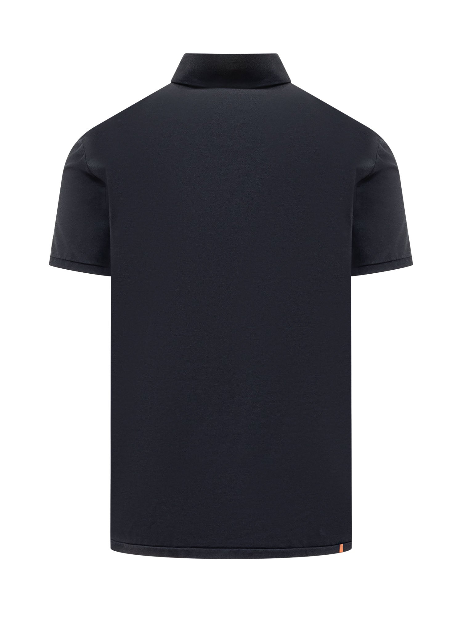 Short-sleeved polo shirt. Classic collar. Button fastening. Blue color.