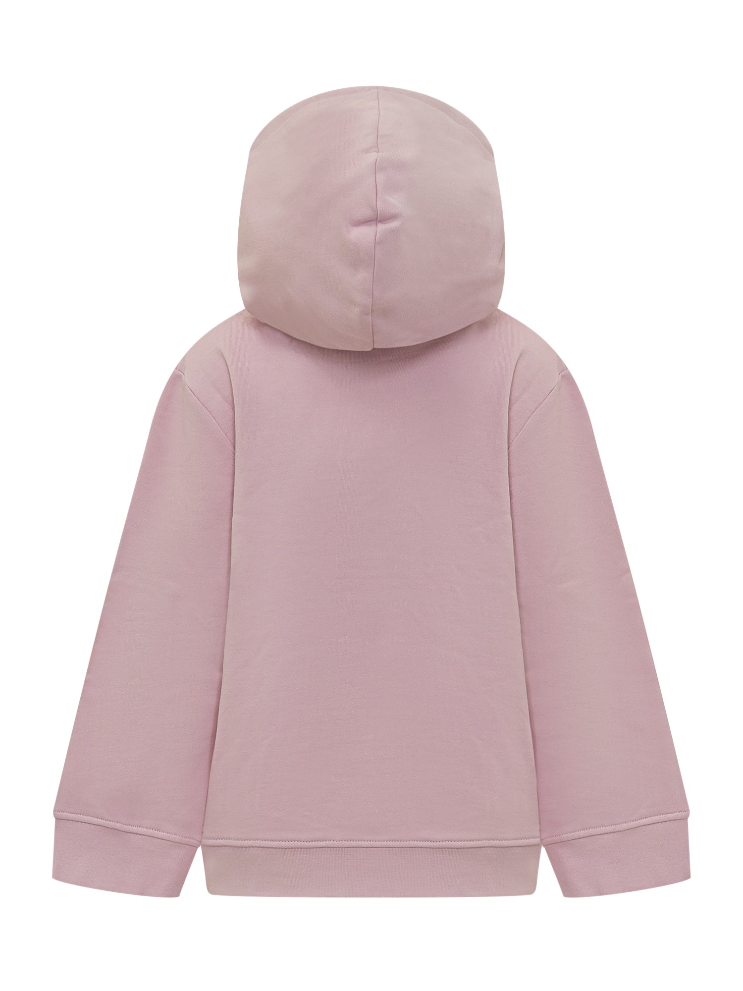 Stella McCartney pink cotton hoodie featuring a multicolor patchwork logo on the front. Soft and sustainable,.