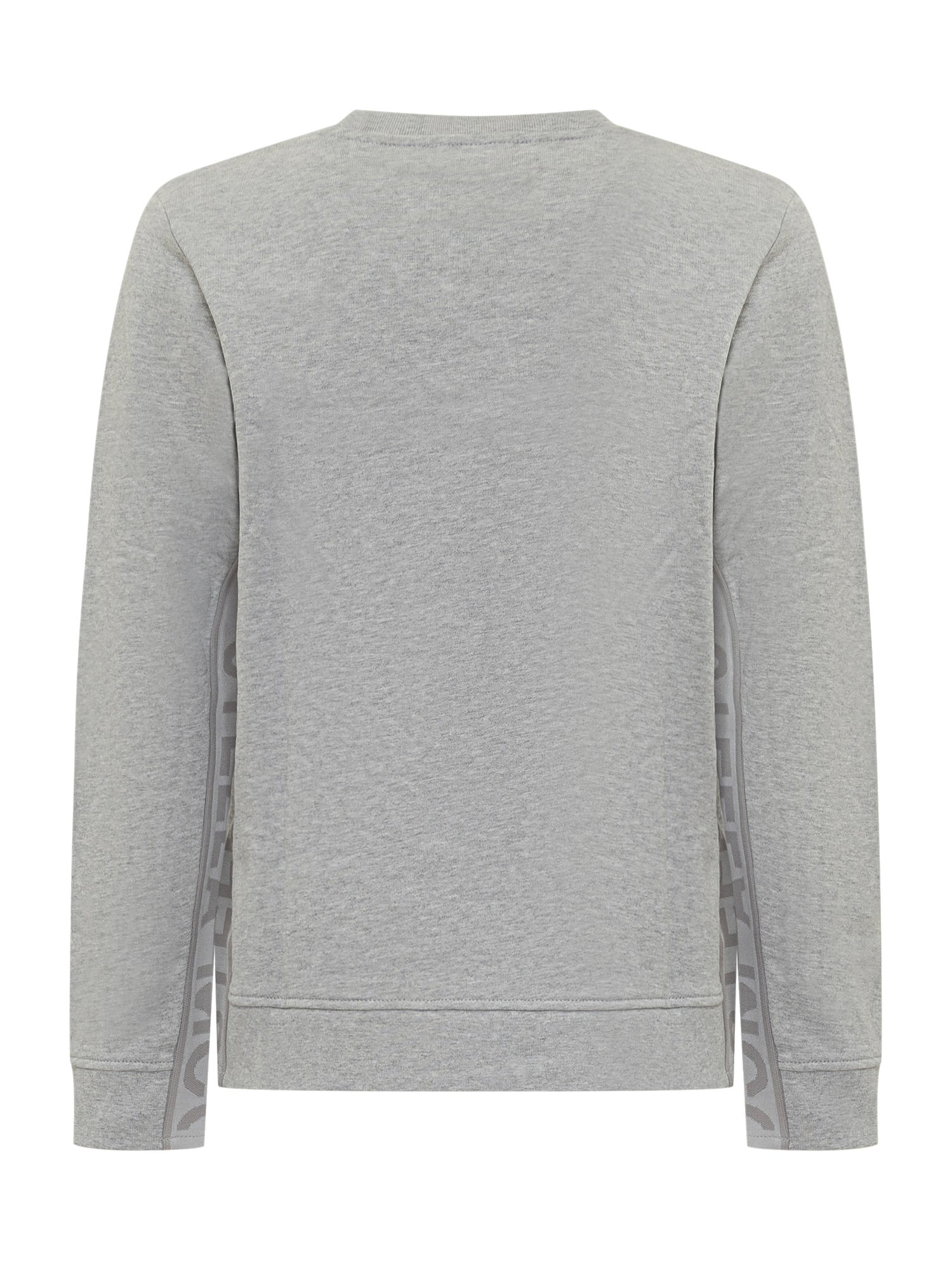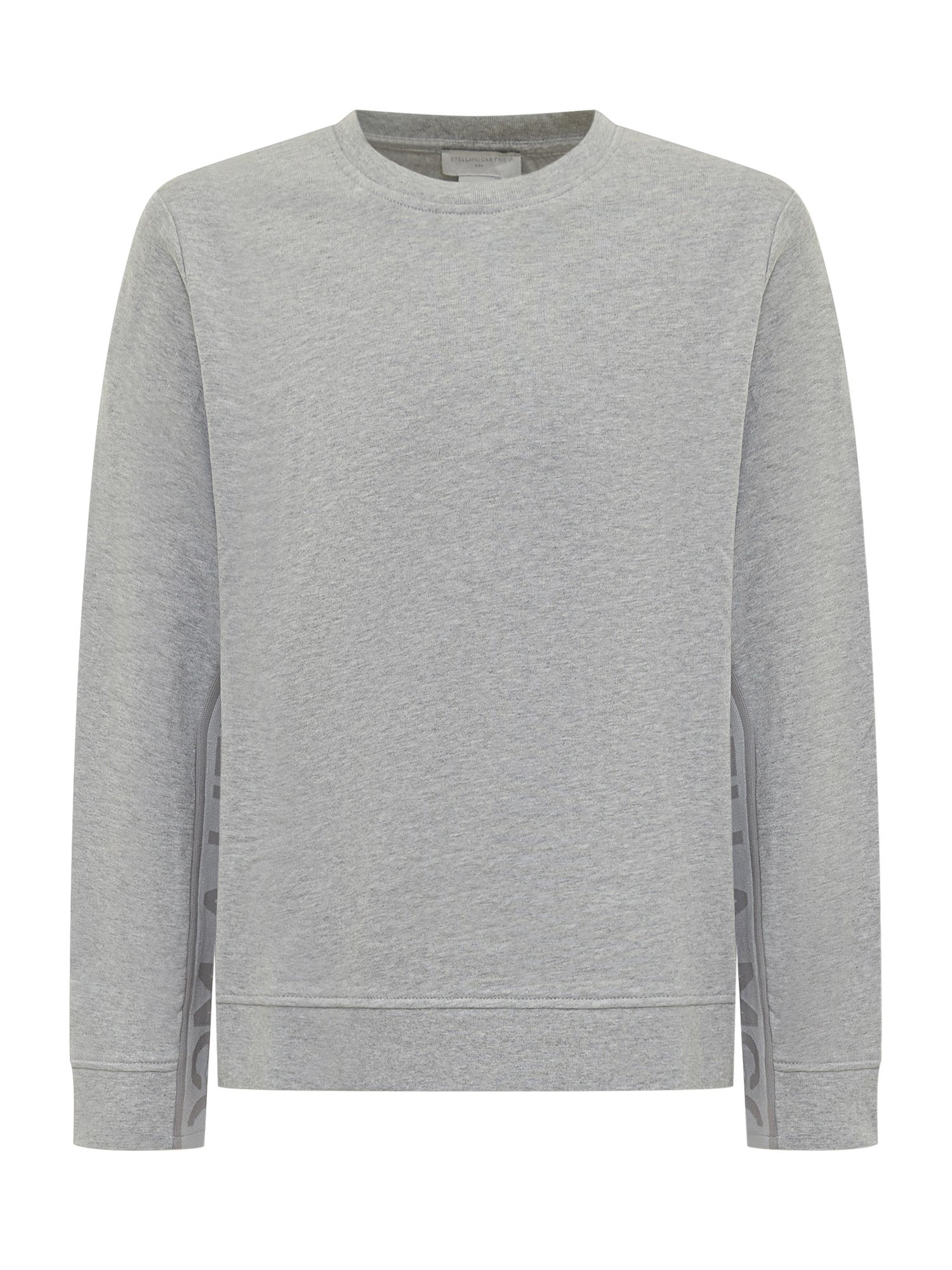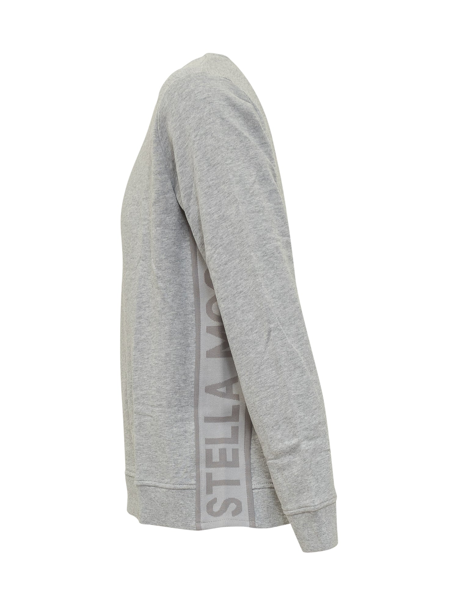 Stella McCartney grey melange crewneck sweatshirt with side logo bands. Minimal and sustainable design.