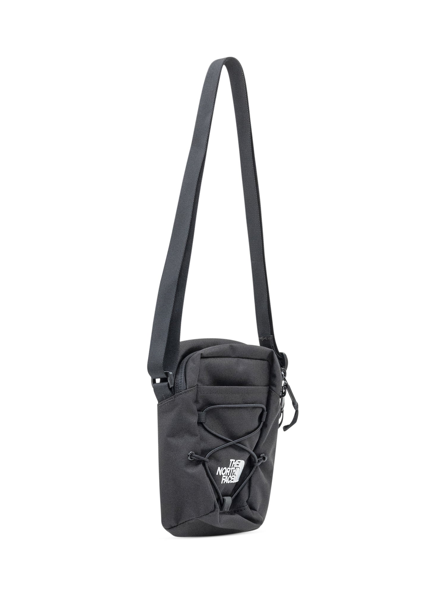 The North Face Jester Crossbody bag in black technical fabric with white front logo. Compact and functional.