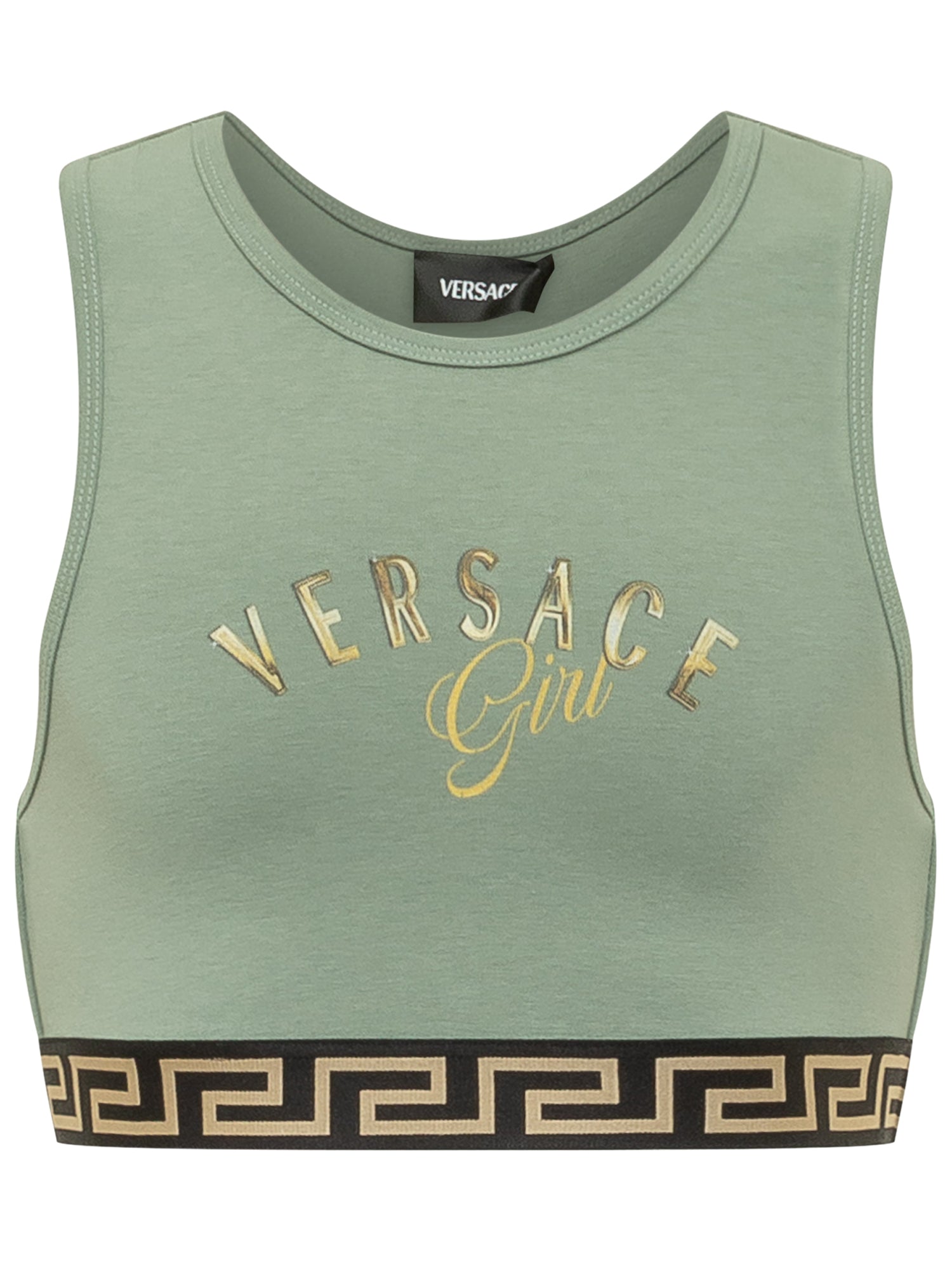 Sporty tank top featuring a decorative front print and contrasting elastic band with Greca motif.