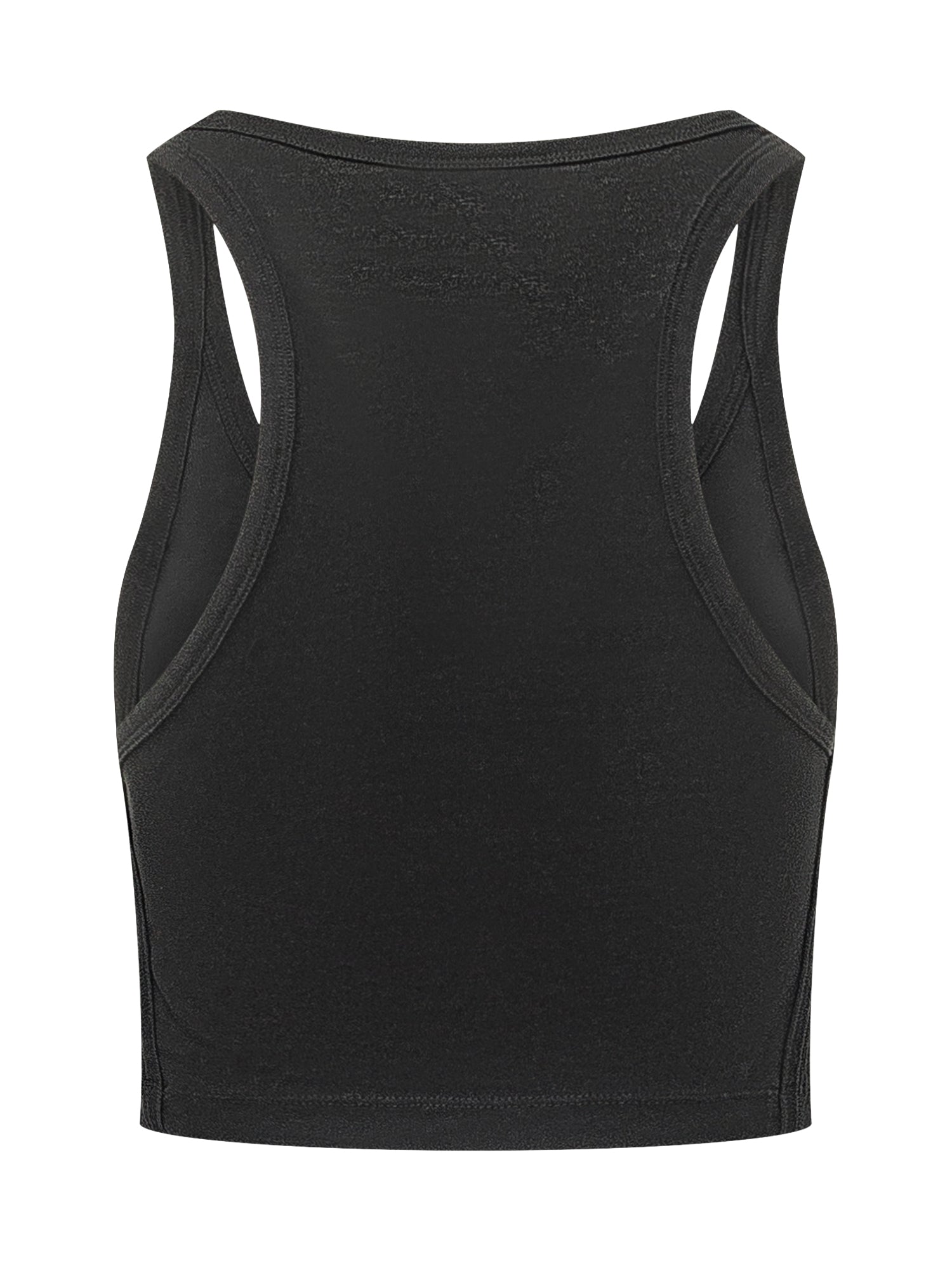 Top corto con taglio sportivo, scollatura ampia e spalle larghe. Realizzato in jersey elasticizzato con logo minimal sul davanti.