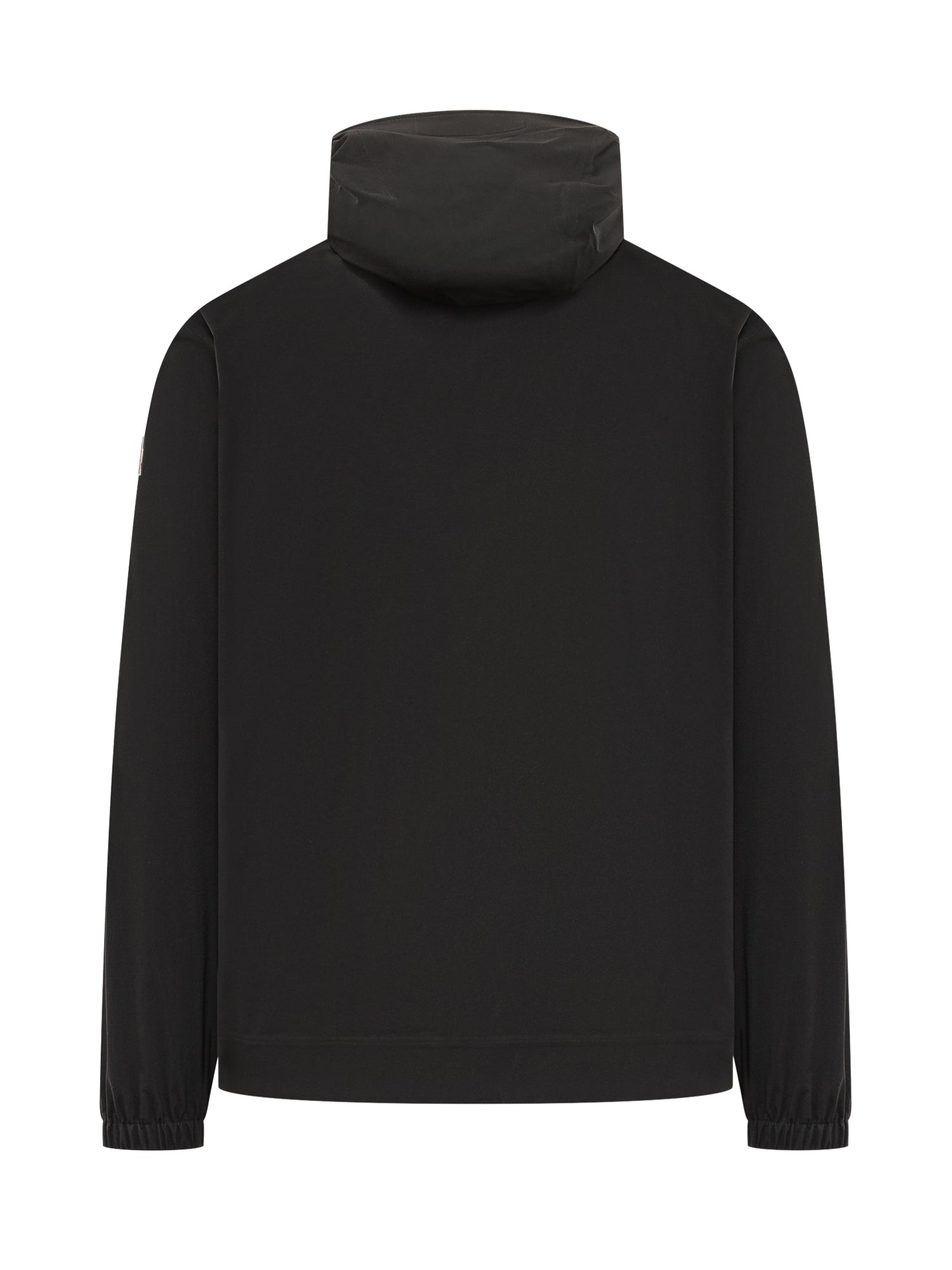 Giacca con cappuccio e chiusura frontale con zip. Tasche laterali con zip e tasche verticali sul petto. Maniche lunghe con polsini elasticizzati e logo stampato sul petto e sulla manica.