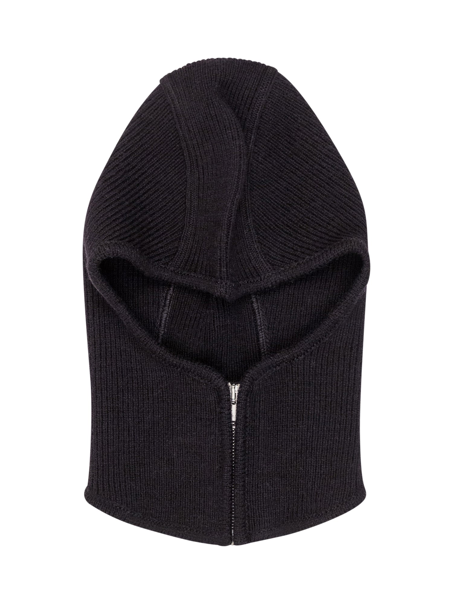 Balaclava a costine con chiusura frontale con zip.