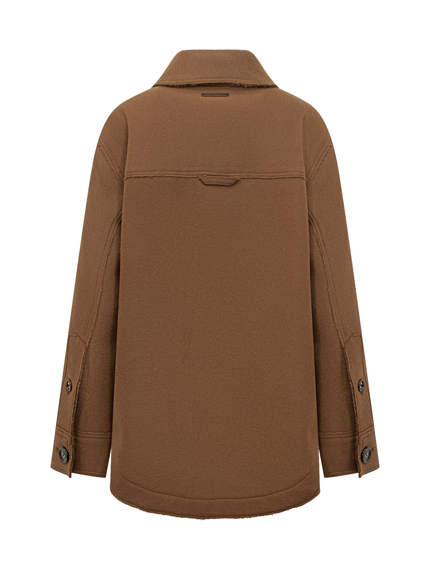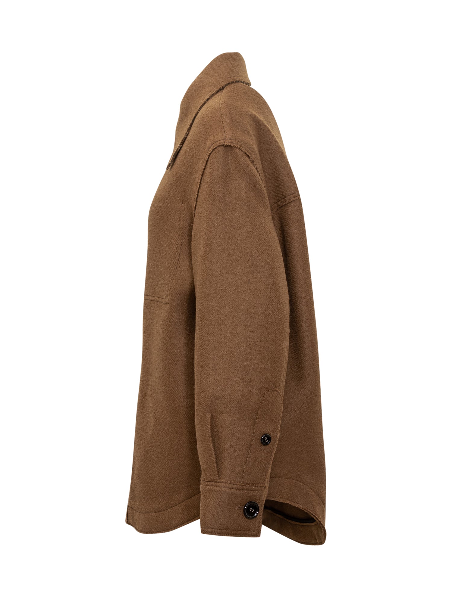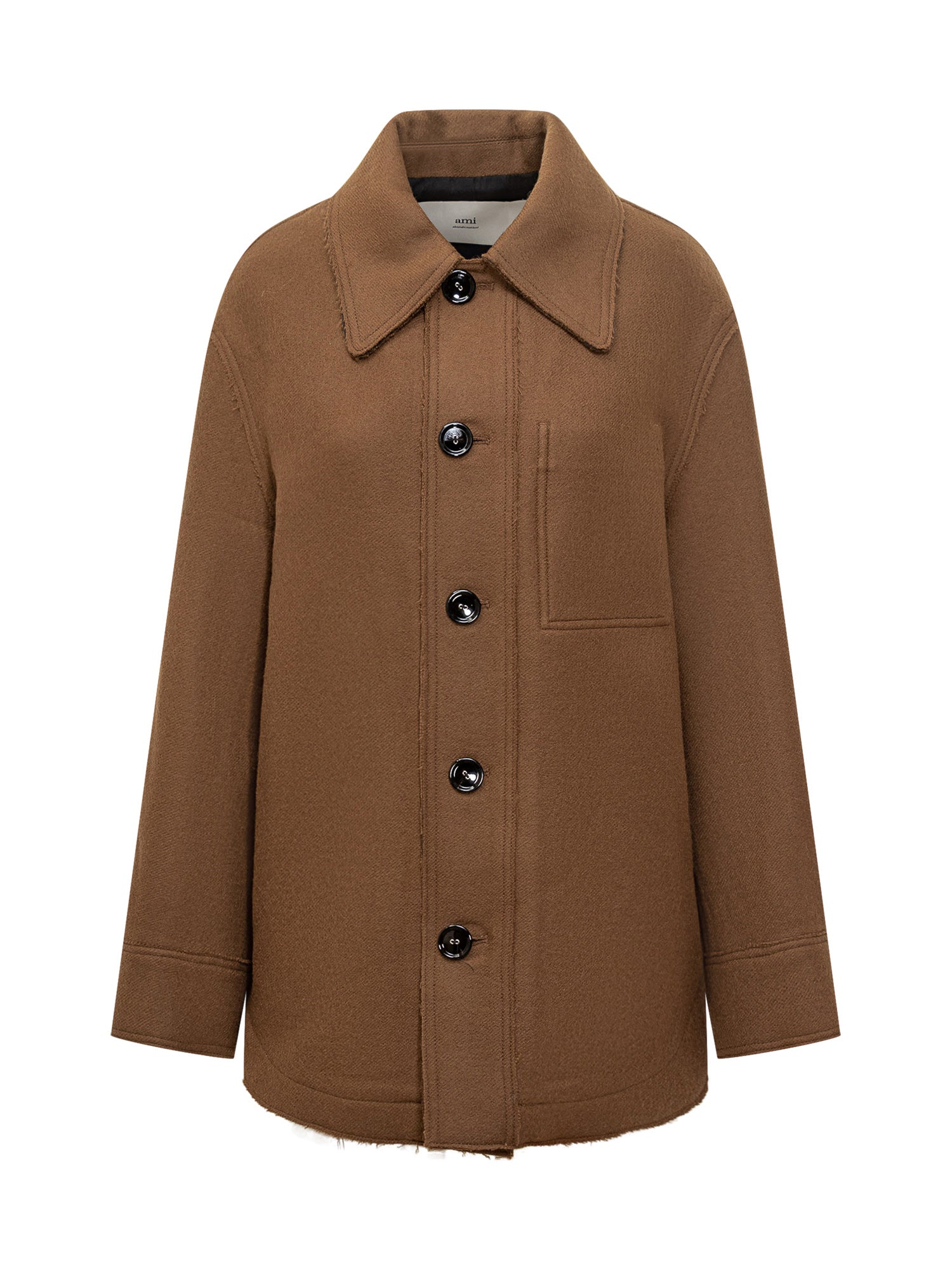 Giacca Ami Alexandre Mattiussi in morbida lana color cammello con chiusura a bottoni neri. Linea dritta e colletto classico.