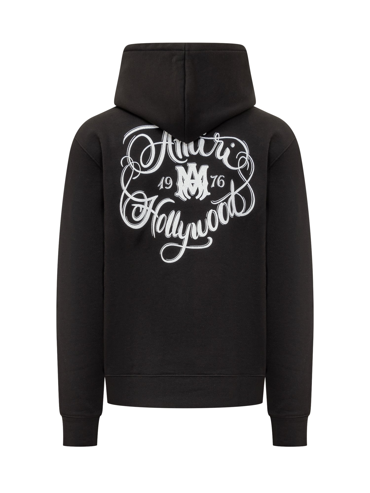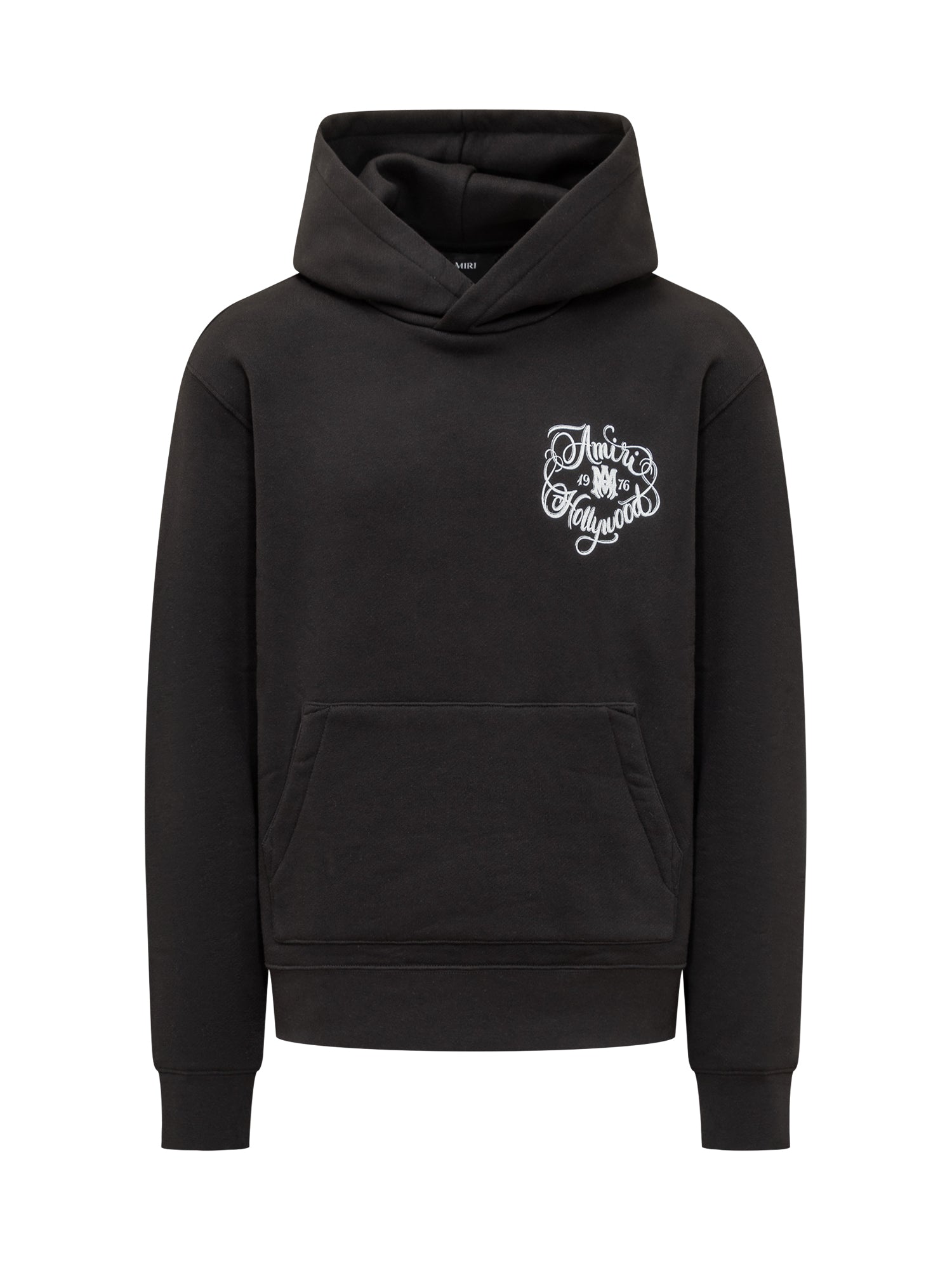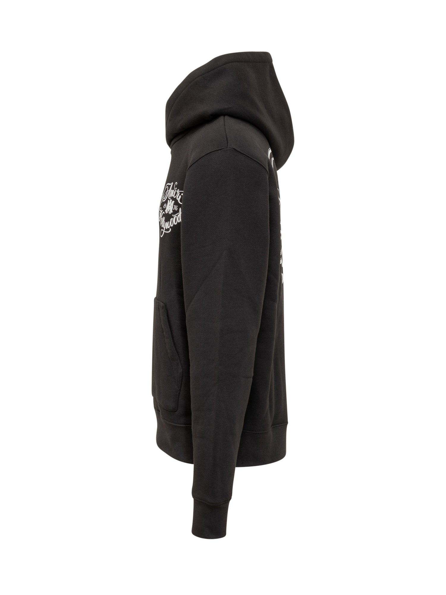 Hoodie in cotone a maniche lunghe con cappuccio e tasca a marsupio, impreziosito da grafica frontale in stile calligrafico.