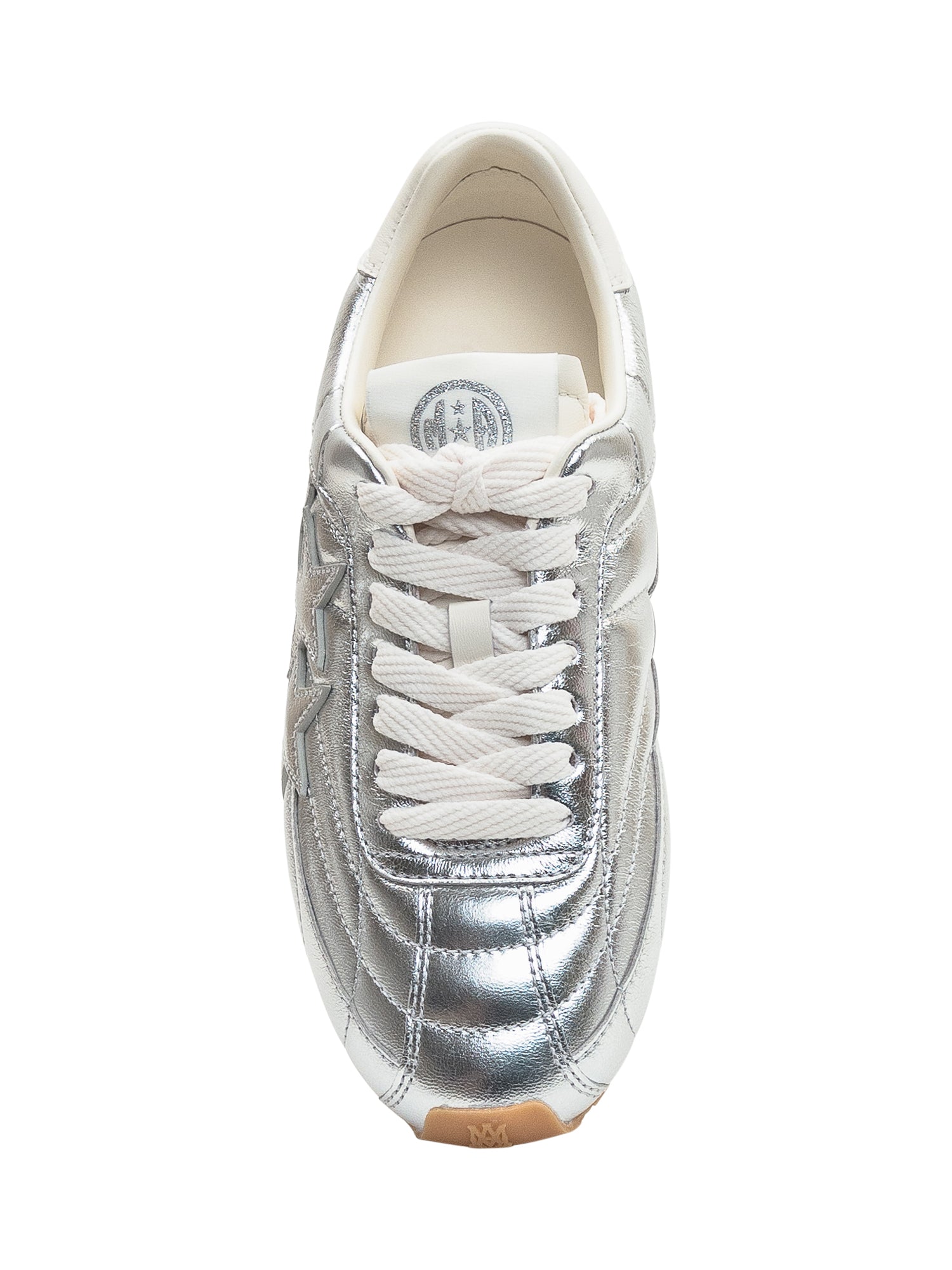 Sneaker leggera dal profilo affusolato, caratterizzata dall effetto metallizzato e dalle stelle laterali ricamate. La suola flessibile garantisce comfort quotidiano, mentre il design essenziale aggiunge un tocco moderno e sportivo.