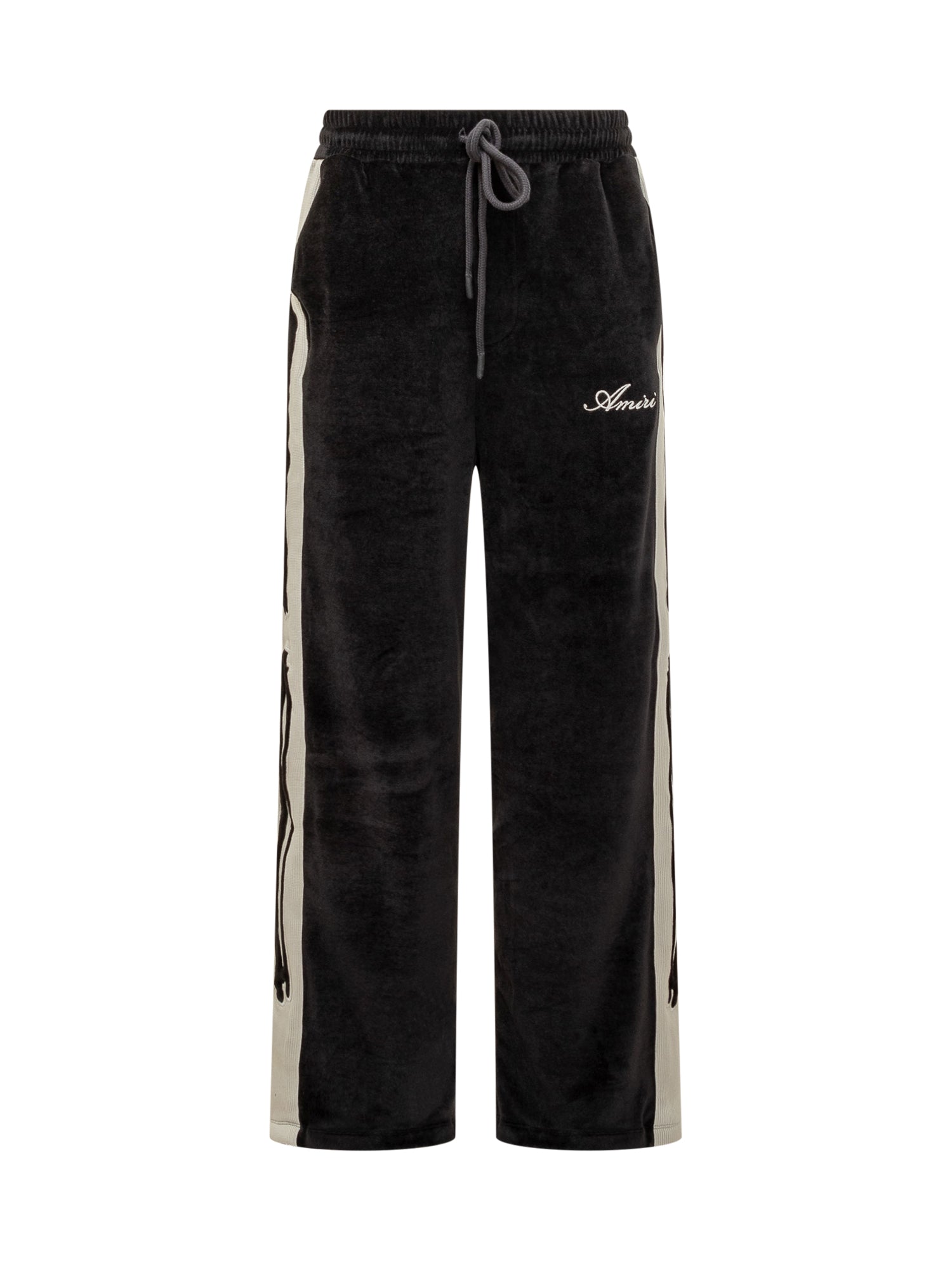 Pantaloni track in velluto con profili laterali a contrasto e iconico motivo bones. Linea rilassata con vita elasticata e logo ricamato.