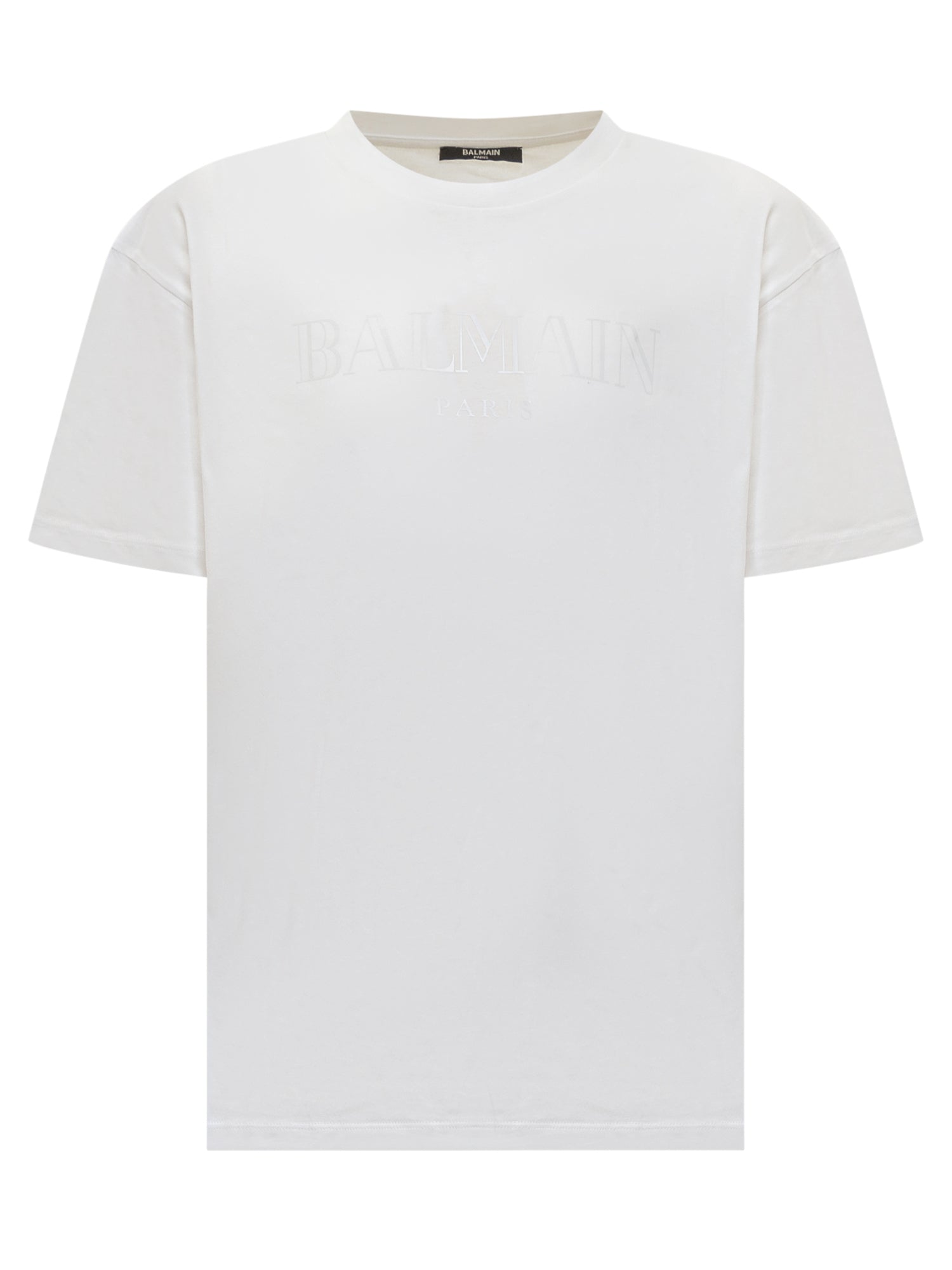 T-shirt bianca da bambino firmata Balmain. Realizzata in morbido cotone, è impreziosita dal logo tono su tono sul petto.