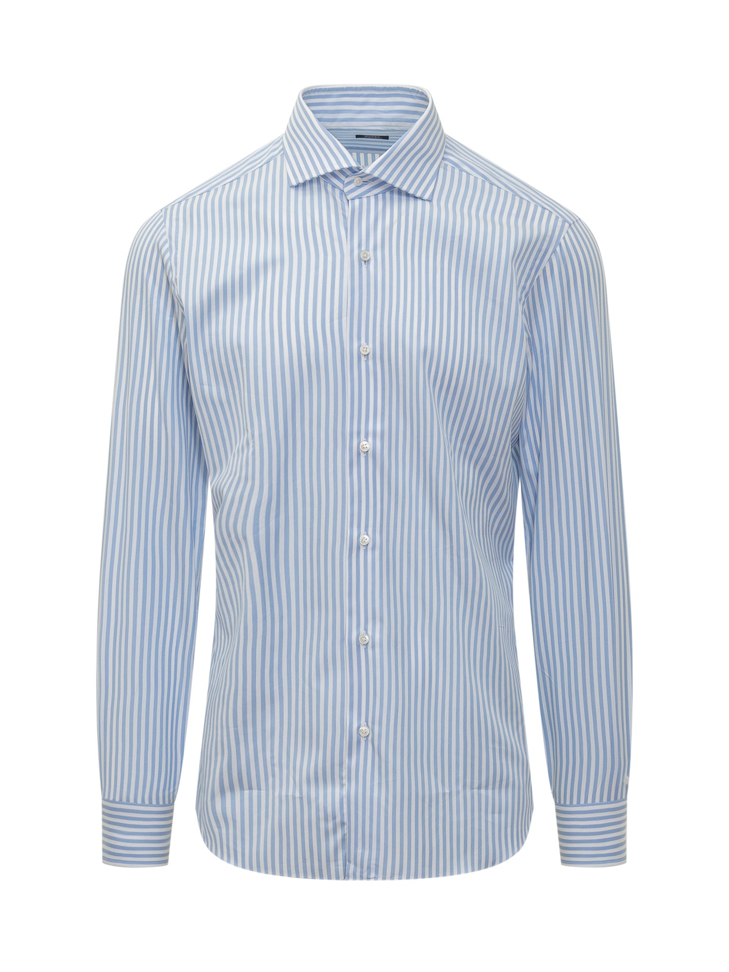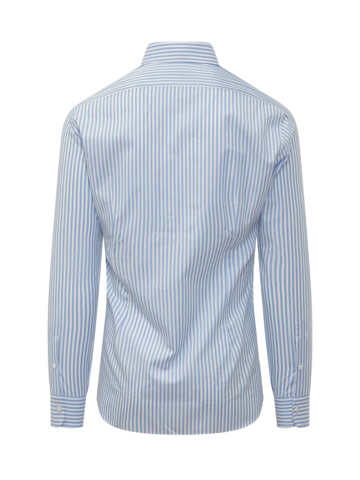 Camicia Barba in cotone con righe azzurre e bianche, colletto classico e chiusura con bottoni.