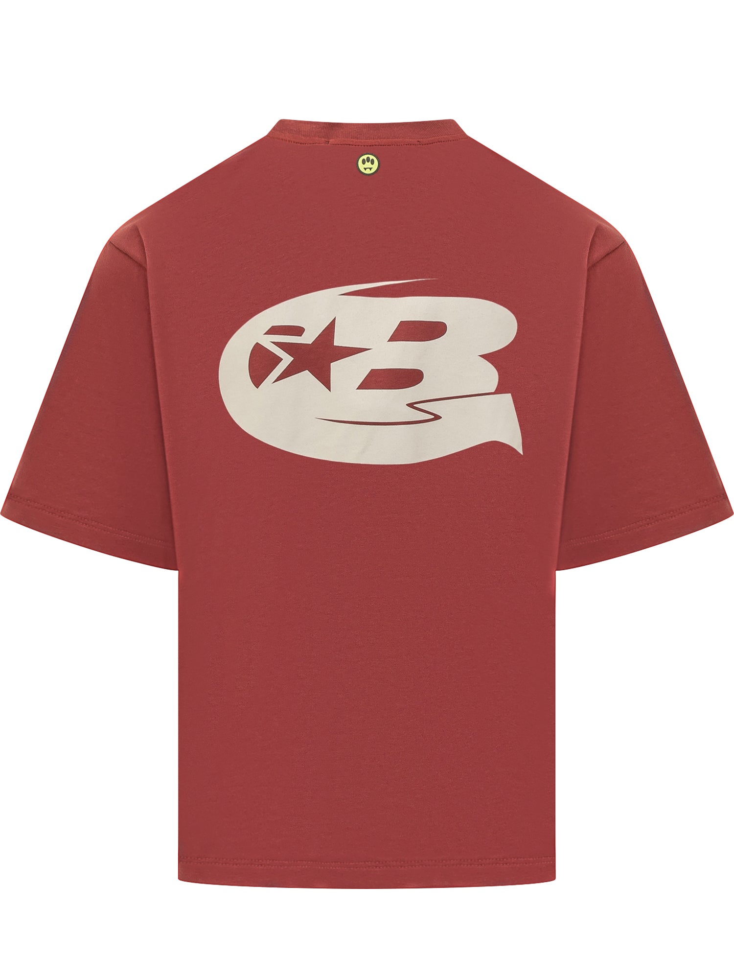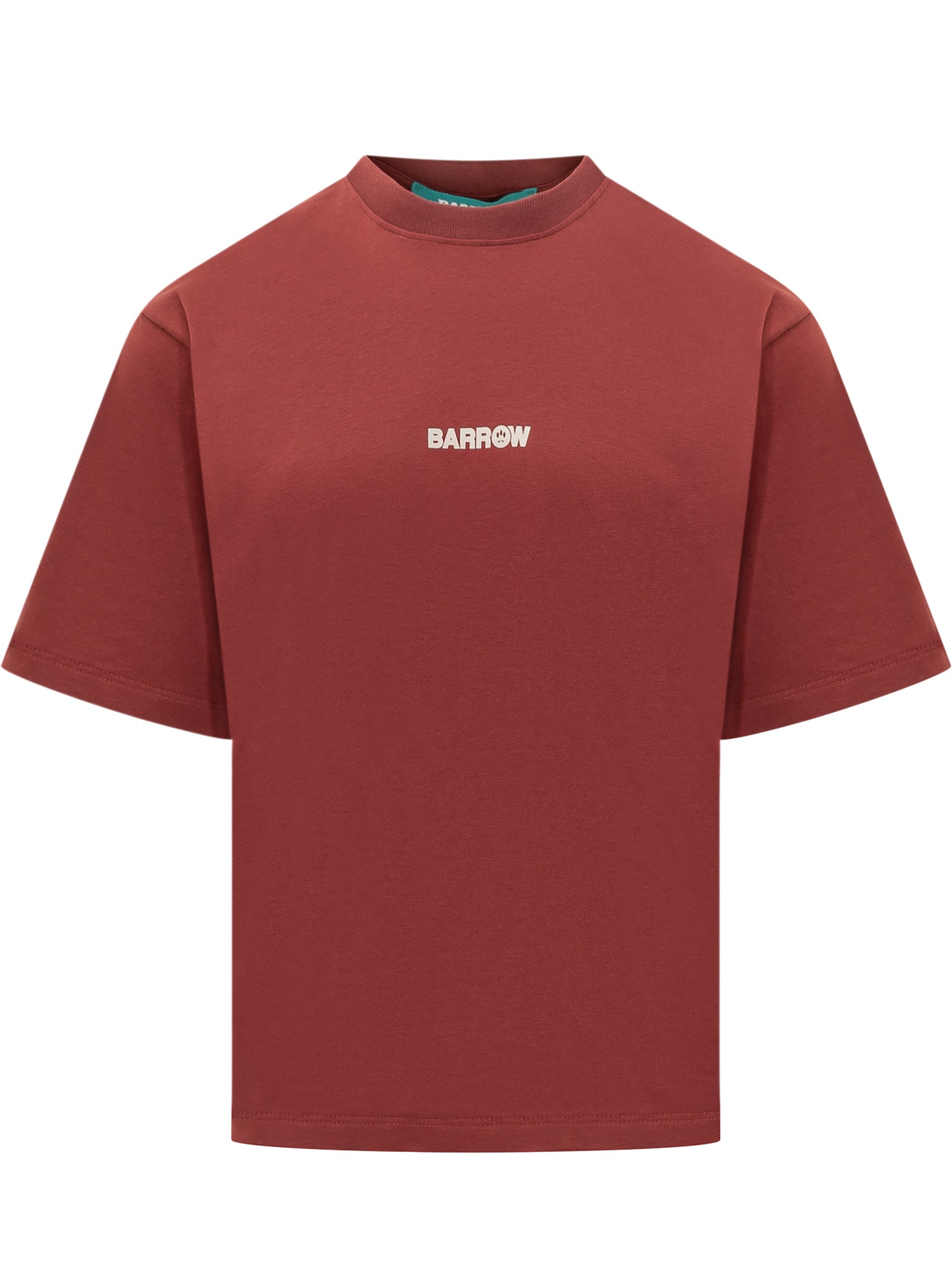 T-shirt Barrow in cotone rosso con logo stampato sul petto. Taglio regular e linee minimal.