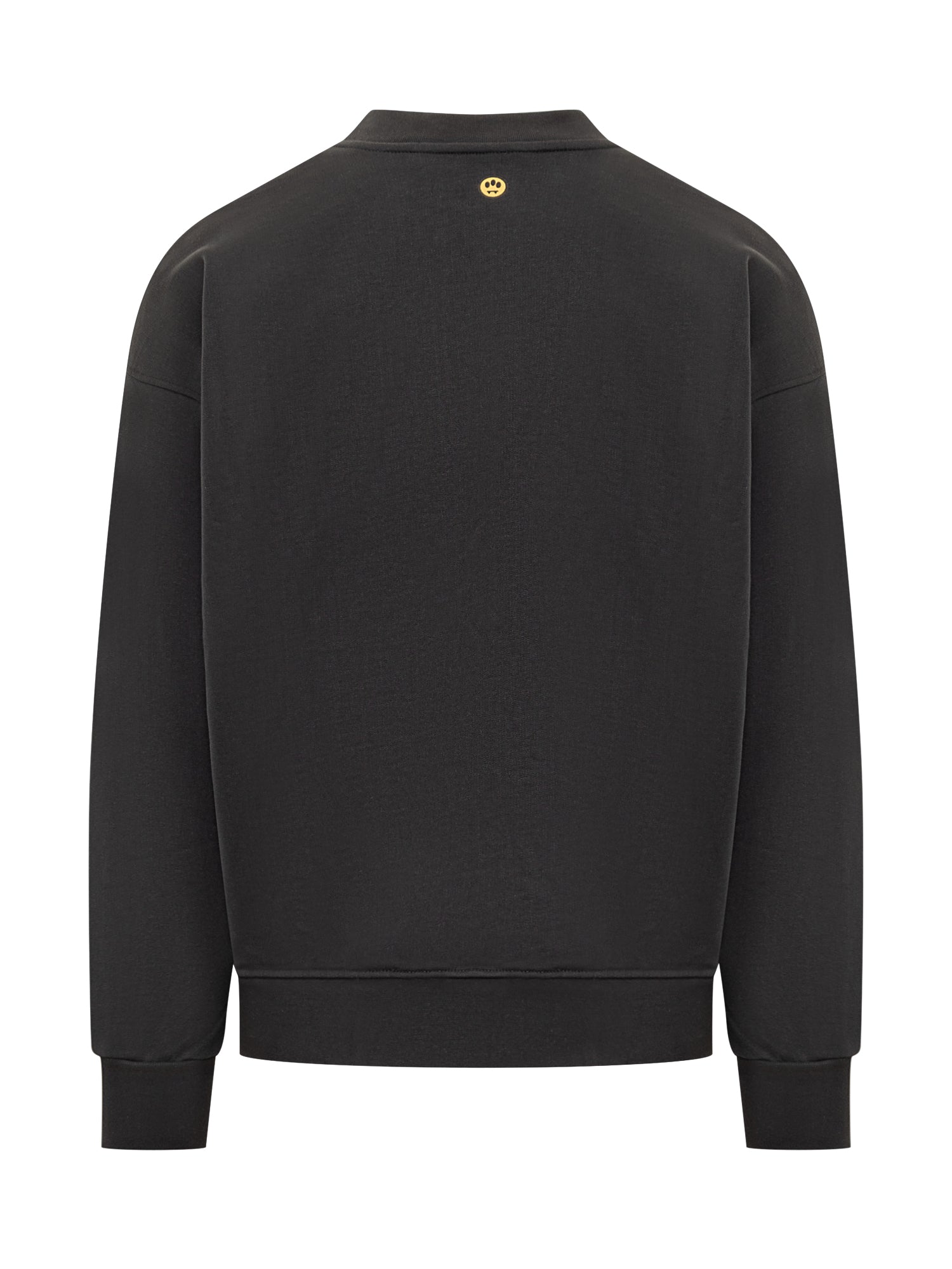 Felpa in cotone nero con stampa orsetto peluche e logo Barrow. Girocollo, polsini e fondo a costine. Perfetta per un look street originale e ironico.