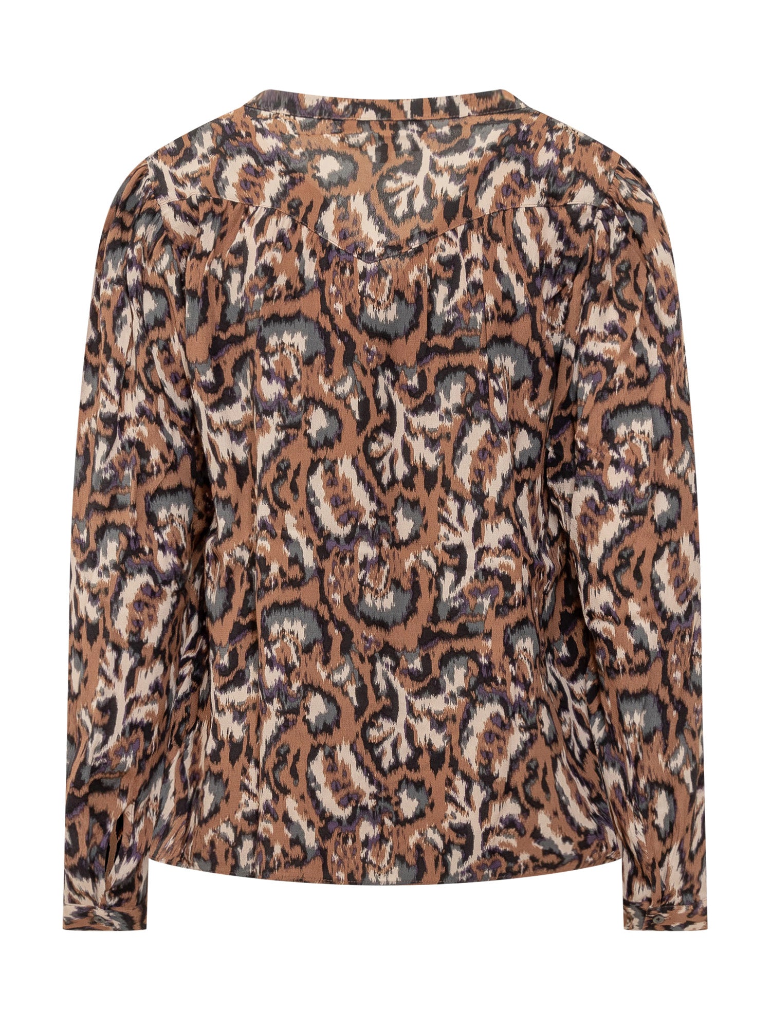 Blusa Ba&sh in tessuto leggero con fantasia astratta nei toni caldi, scollo a V e abbottonatura frontale.